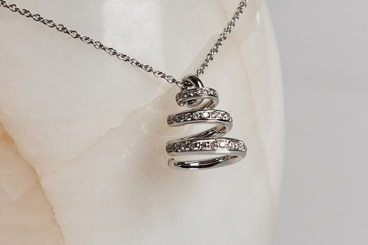 È per celebrare i primi 175 anni della ditta che Serena Pozzolini Gobbi decide di lanciare il proprio brand di gioielleria. «Mancava una linea nostra di gioielli, con cui si potesse identificare il negozio. Ho trovato nella spirale, simbolo del Dna, un collegamento con le origini dell’azienda. Sintesi grafica del patrimonio genetico che custodisce la storia familiare, ha sei giri come le sei generazioni che hanno finora guidato la ditta Gobbi 1842. Ed è anche una parte fondamentale del movimento di un orologio, quella che fa funzionare il cuore del sistema. L’ispirazione nasce da lì», spiega.