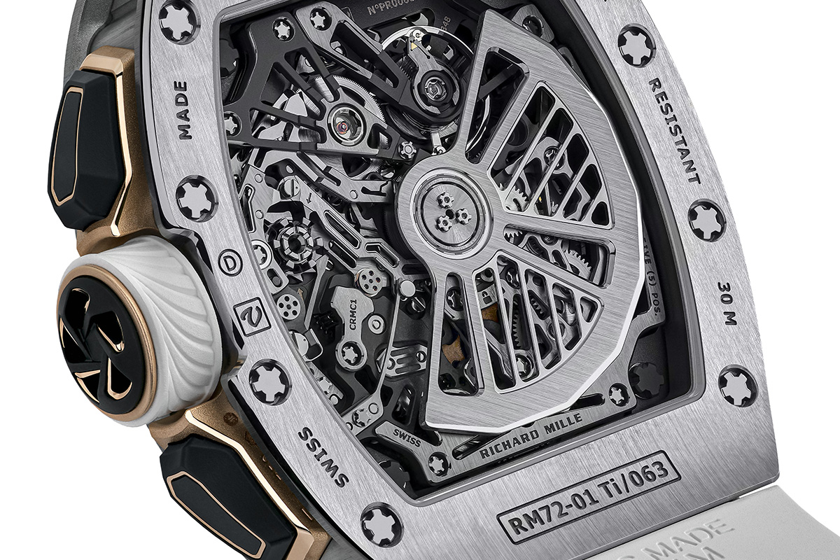 Un bel casino. Al quale in parecchi – i migliori – hanno cercato di porre riparo spingendosi persino a soluzioni con doppio bariletto (uno per l’energia dell’orologio e uno per il cronografo); o addirittura a doppio orologio (uno per così dire normale e uno per il rilevamento dei tempi). Soluzioni che hanno aperto un percorso di ricerca nel quale ben si inserisce il Calibro CRMC1 del cronografo RM 72-01.