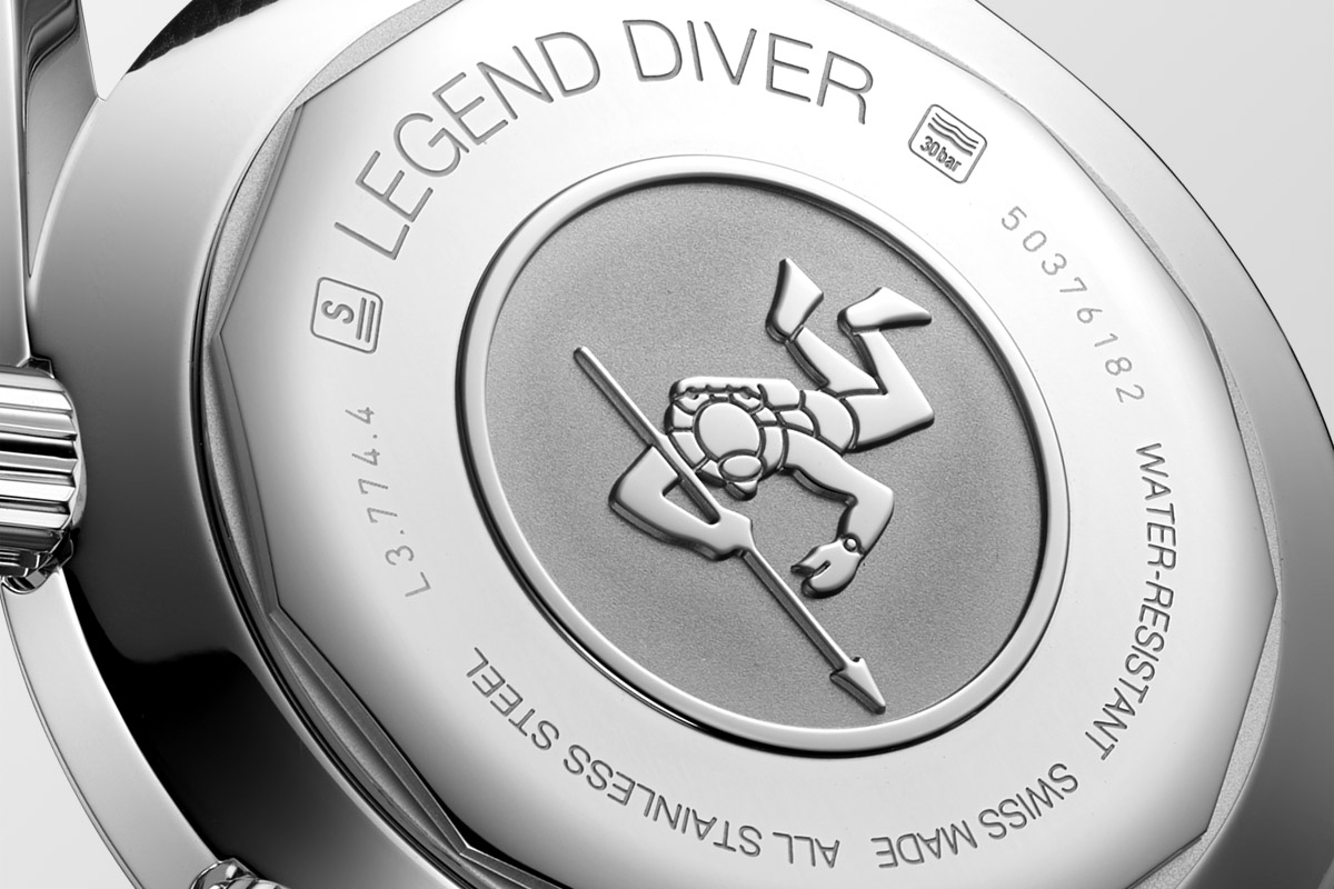 Blu è anche una delle due versioni del Legend Diver che Longines lancia in anteprima per il nostro mercato. Ok, diciamolo subito per togliere la curiosità: l’altra è marrone. In entrambi gli orologi, la struttura tecnica ed estetica è quella del Legend Diver “classico”, erede della tradizione subacquea che il marchio si è costruito a partire dagli anni ’60, periodo al quale questo diver strizza l’occhio.