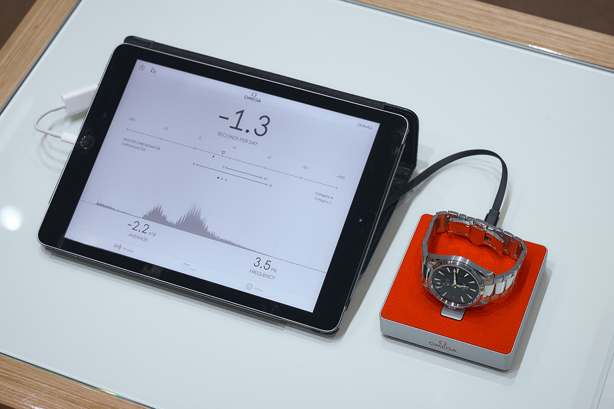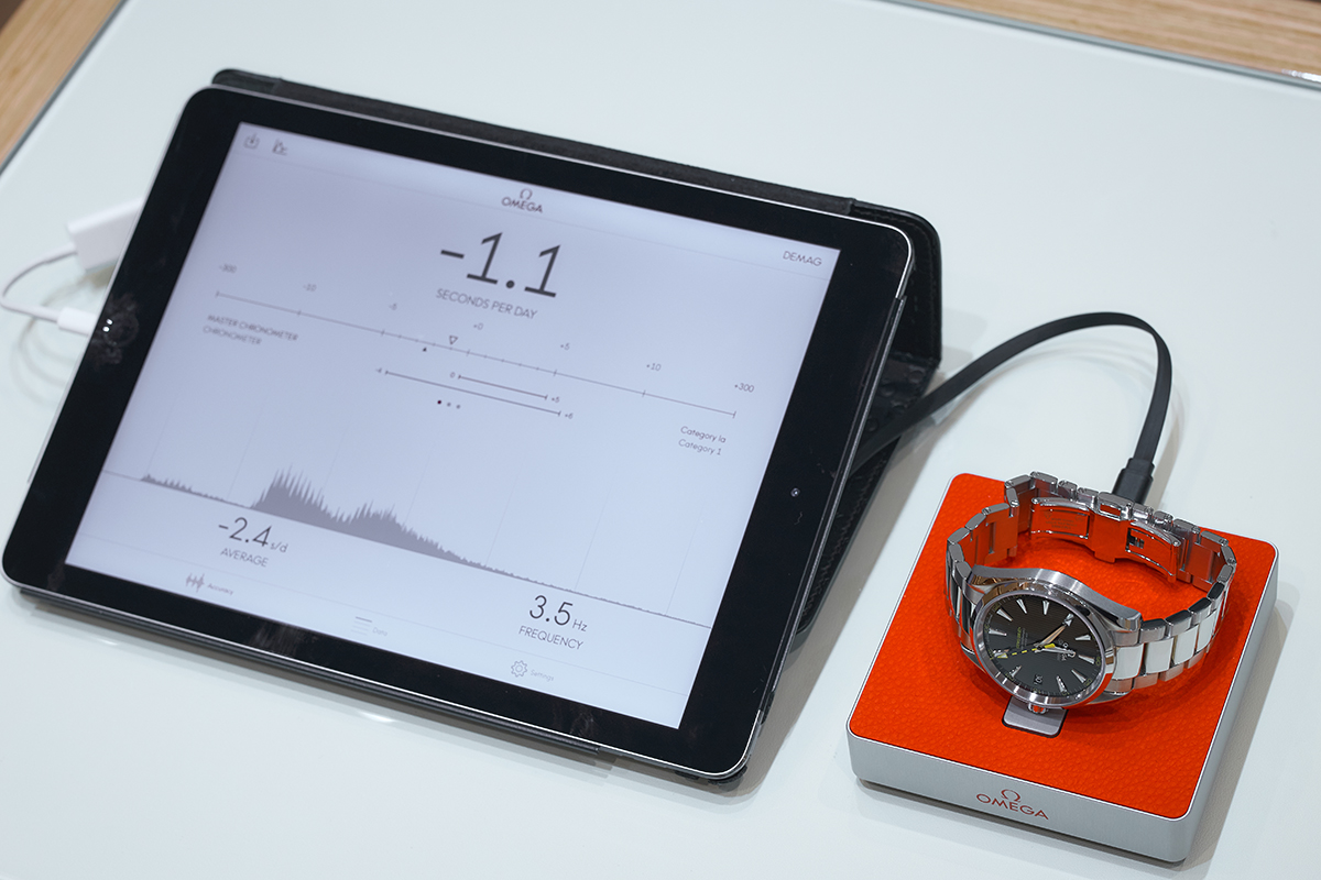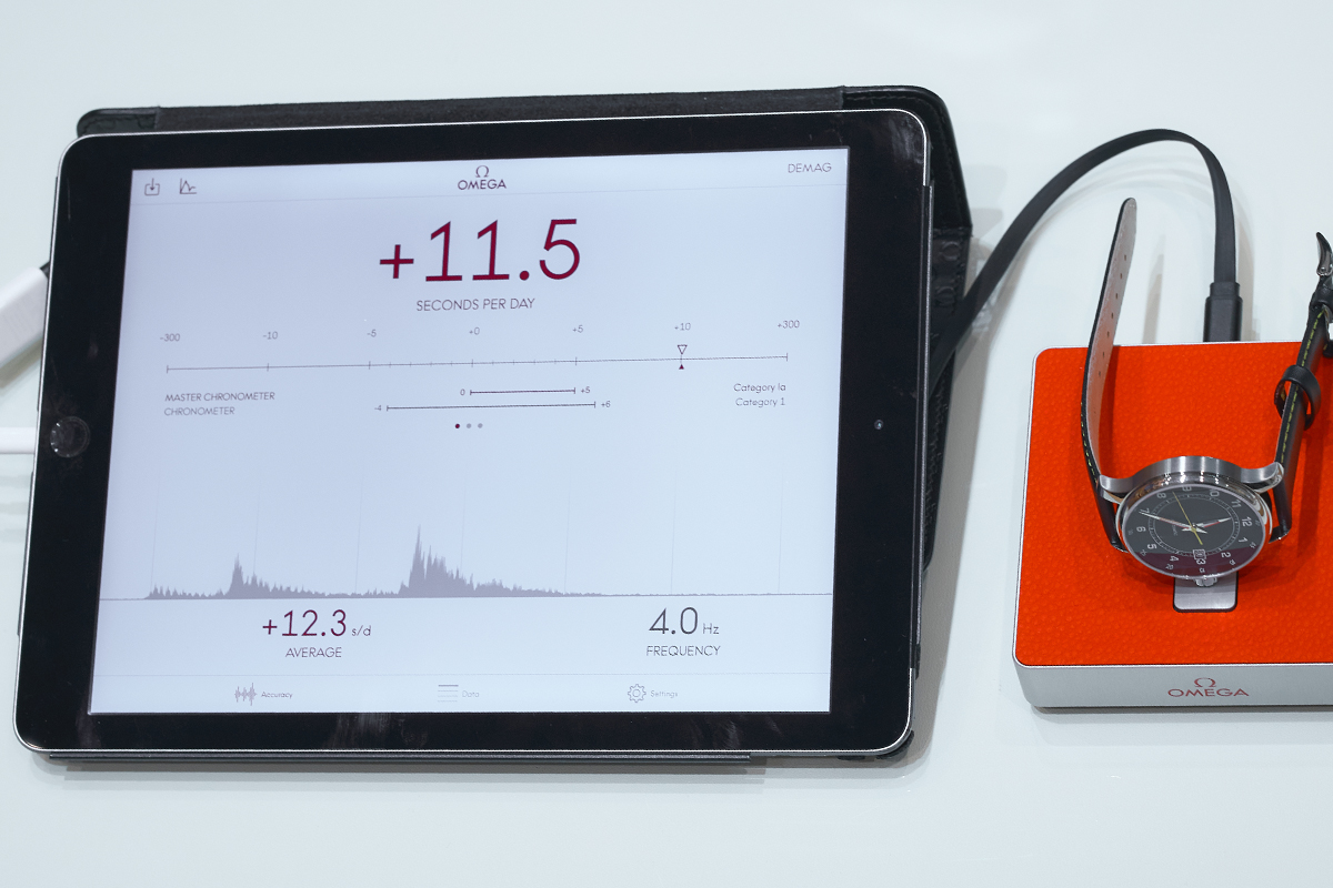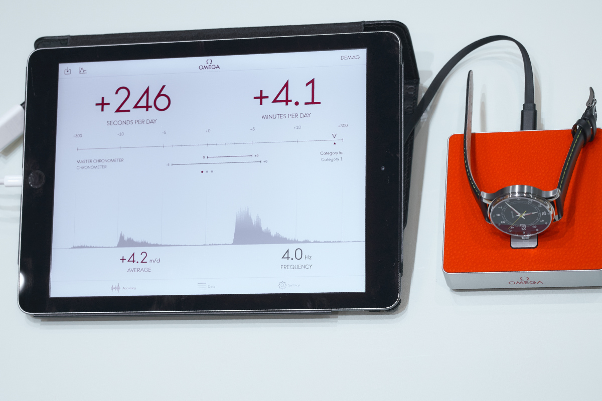 Abbiamo piazzato l’orologio sul cronocomparatore che ha indicato -1,3 secondi al giorno di scarto. Graaan bel risultato, tanto per cominciare. Poggiata la calamita sul vetro del fondello, rimesso l’Omega sul cronocomparatore, 1,1 secondi al giorno. Una deviazione più in linea con la rumorosità dell’ambiente che con il campo magnetico. Il quale non ha di fatto minimamente influito sulla precisione del Calibro Co-Axial 8508. Per una volta il marketing non ha né indorato la pillola né raccontato balle. Impressionante davvero.