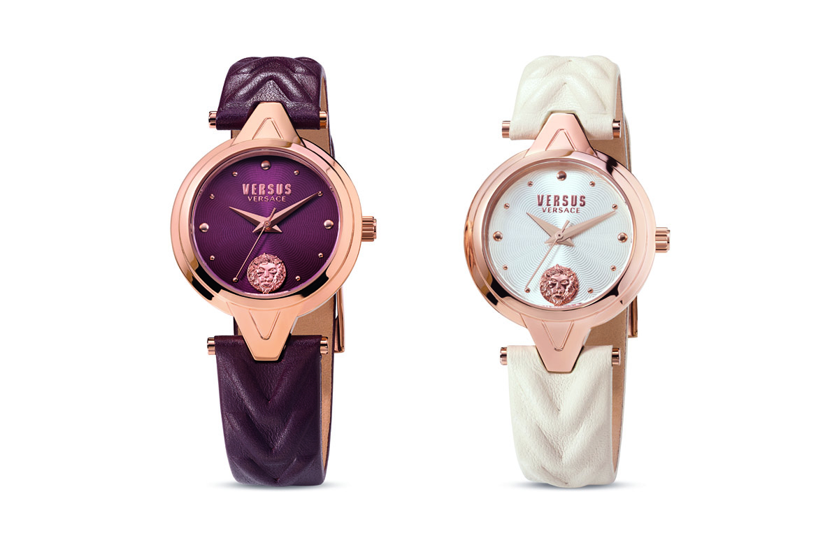 Infine il V_Versus Forlanini, più discreto ma non per questo meno identitario. La cassa lady size (misura 30 mm di diametro) presenta una doppia lunetta che sfocia nelle due anse centrali a forma di V. Sempre l’iniziale è ripetuta poi sul cinturino di pelle goffrata o sul bracciale in acciaio. Iconico anche il quadrante, con la testa del Leone al 6 che spezza la sequenza regolare degli indici a borchia (di due misure), mentre lo sfondo è decorato da un motivo flinqué. Tre orologi nati per distinguersi, nel più puro Donatella style.