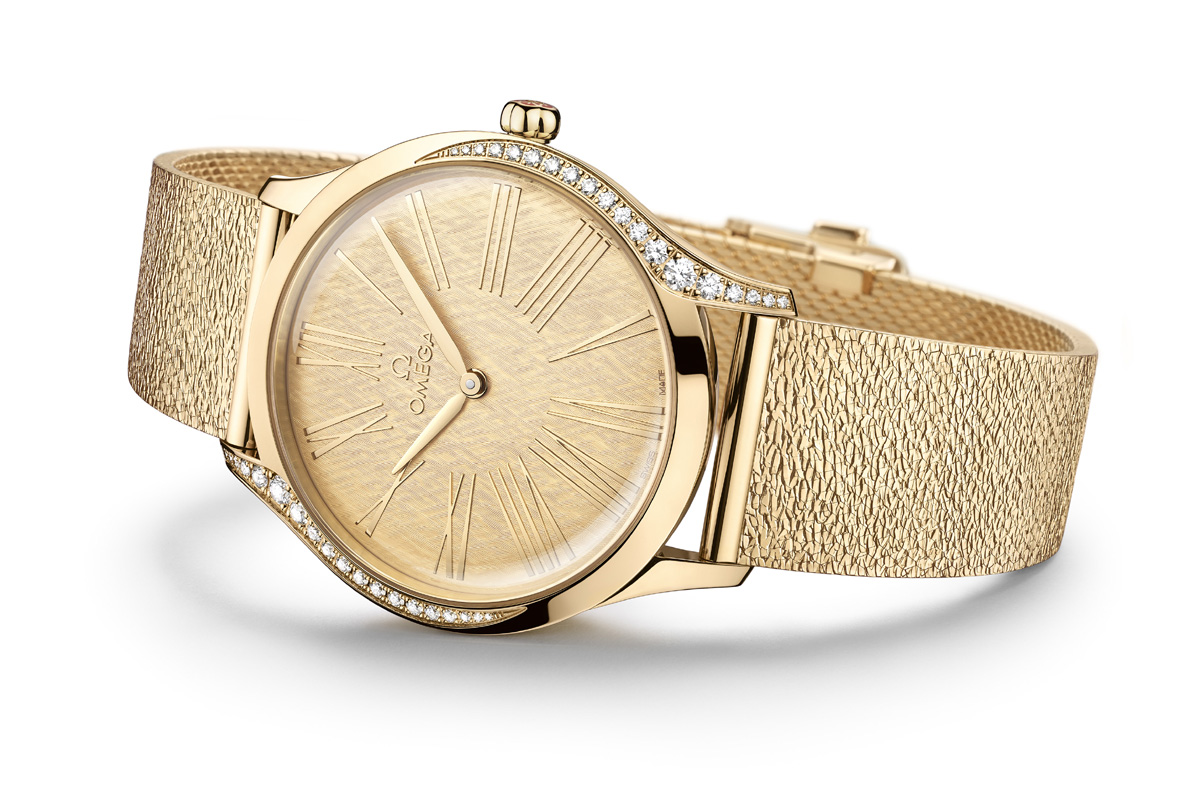 Tra gli orologi ladylike più recenti, infine, non va dimenticato l’Omega De Ville Trésor con bracciale mesh. Che si distingue per una particolarità costruttiva: il bracciale sembra montato al contrario. Nel senso che, invece di mostrare l’intreccio dei fili in successione (il “recto”), ne rivela il lato opposto (il “verso”), dalla texture più irregolare (per vedere la struttura del tessuto a maglia, quindi, bisogna guardare l’interno del bracciale). Al polso, la sensazione di flessibilità dev’essere la stessa, ma l’effetto estetico cambia radicalmente. Un segno, forse, dell’evoluzione degli orologi ladylike, capaci di reinventarsi pur attraverso gli elementi di sempre.