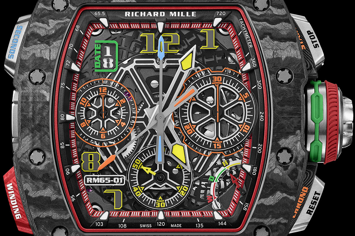 Ed ecco la scheda tecnica del Richard Mille RM 65-01, cronografo sdoppiante automatico.