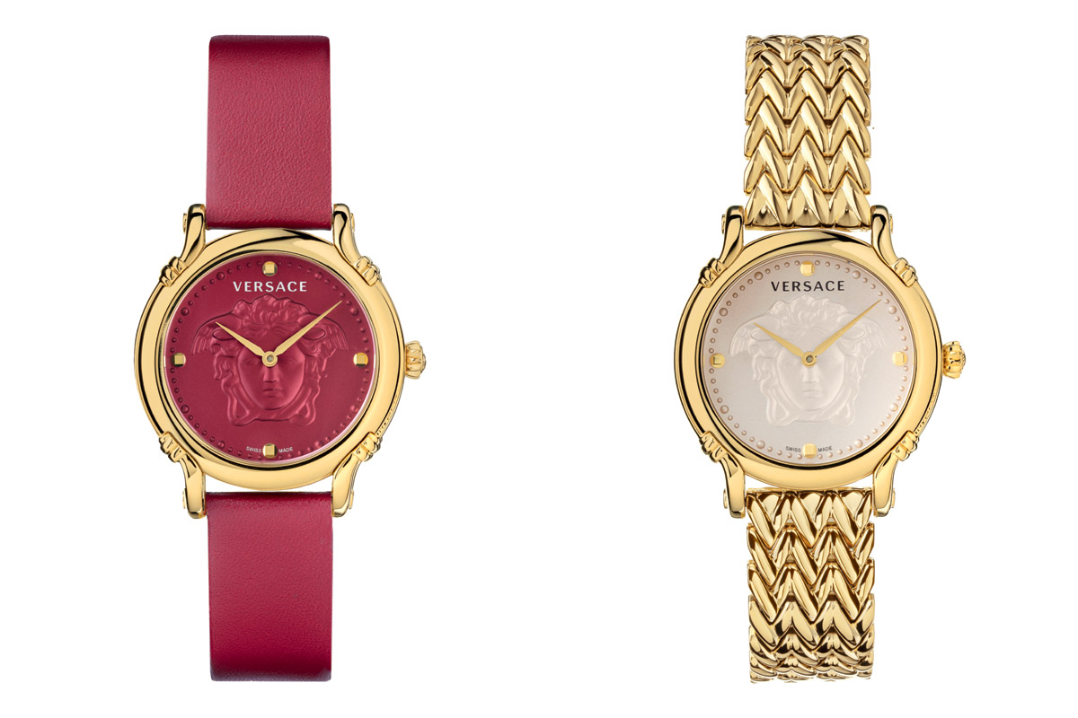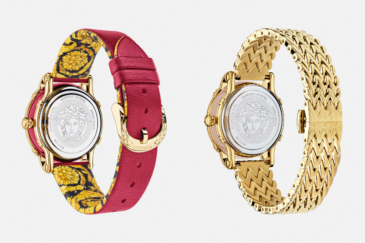 L’orologio Versace Safety Pin rappresenta dunque uno statement preciso: il ribadire come le donne abbiano il potere di vivere liberamente la propria sensualità e lo facciano con lo charme sfrontato tipico della maison. Oltre alle safety pin, c’è anche un altro simbolo inconfondibile dell’universo Versace: la Medusa. Che compare sul quadrante del Versace Safety Pin nelle varianti rossa, bianca, avorio o nera, dov’è impressa a rilievo. Le lancette sono invece disegnate a punta di spillo e la V di Versace si ritrova nel bracciale gioiello in metallo. Ma è disponibile anche la versione con cinturino in vitello nei toni del rosso, avorio, nero e blu, foderato con stampa Barocco. La cassa in acciaio dorato ha un diametro di 34 mm e il movimento è al quarzo, un Ronda 762.3 a due lancette. Ovviamente Swiss Made.