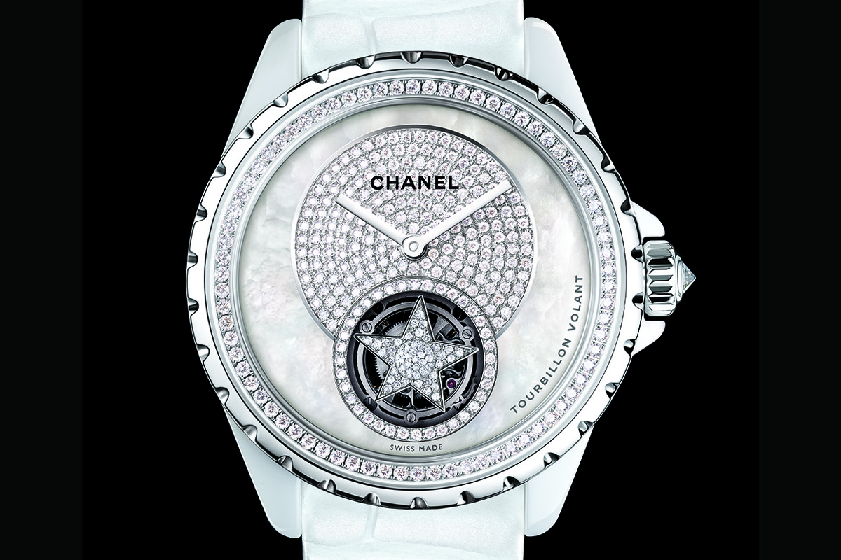 2005, altra Baselworld. Chanel è di nuovo sotto i riflettori, questa volta per il J12 Tourbillon. L’esordio nell’alta orologeria: un passo inatteso per i più, un azzardo per i soliti tromboni, una dichiarazione d’intenti per chi sa guardare lontano. La platina in ceramica è fabbricata con una precisione al centesimo di millimetro, la gabbia del tourbillon è in vetro zaffiro, l’autonomia di 100 ore. Realizzato in un’edizione limitata di 12 esemplari (bianchi, e altrettanti neri), va subito sold-out nei primi giorni di fiera.