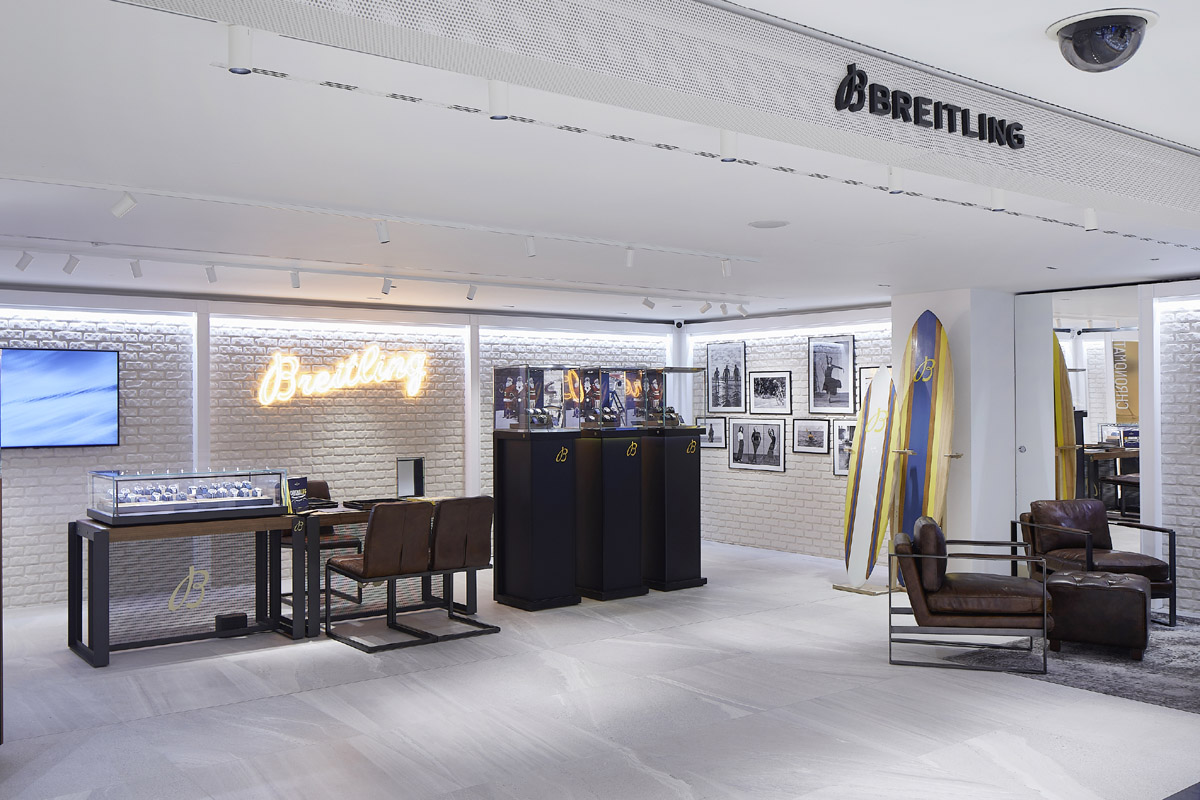 Il nuovo shop-in-shop Breitling vanta una posizione privilegiata, al piano terra, nel reparto Orologi & Gioielli: uno spazio di 50 mq caratterizzato dal suo inconfondibile stile modern-rétro, che si riflette negli arredi utilizzati, nelle pareti in mattone bianco e nell’esposizione di oggetti desiderabili, come la tavola da surf e la bicicletta di Breitling, simboli dei mondi dinamici di aria, mare e terra nei quali si declina l’universo del Brand e le collezioni di orologi dedicate.