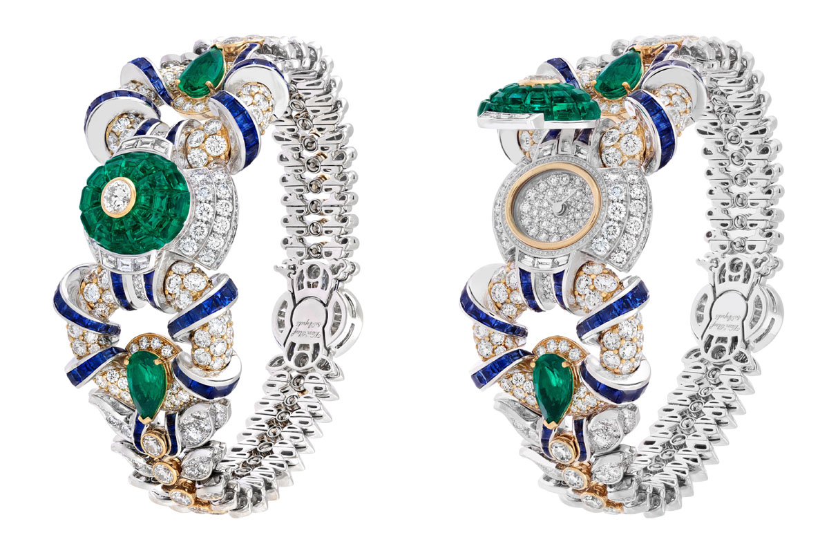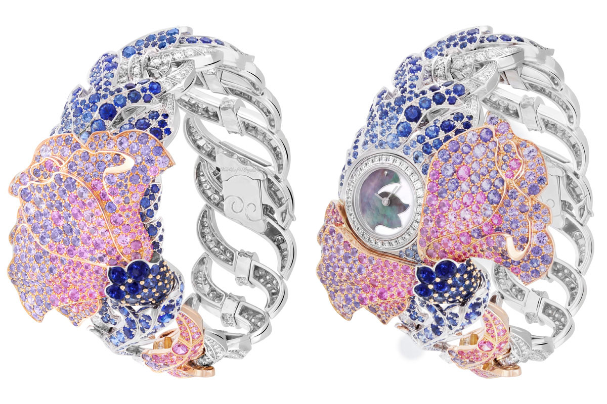 Ecco quindi l’unione fra i diversi colori dell’oro (bianco, rosa e giallo), quelli degli zaffiri (blu e rosa) e l’assoluta trasparenza dei diamanti. Colori, oltretutto, non casuali: il blu degli zaffiri evoca le lacrime di Afrodite, il rosa e il malva i fiori che sbocciano dal sangue di Adone. In alta gioielleria, del resto, tutto rimanda a un preciso significato. E gli esemplari delle Couples Mythiques non fanno certo eccezione.