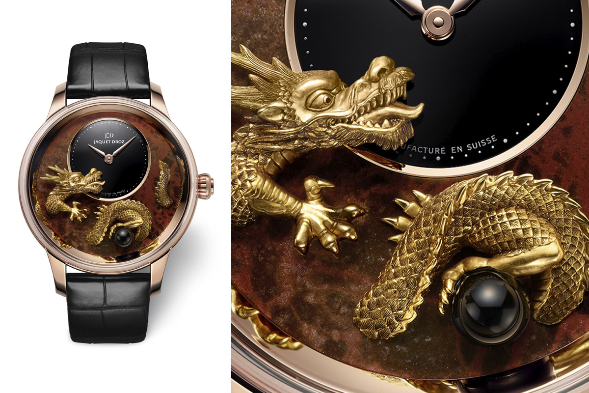 Insomma, i draghi non sono solo animali mitologici per eccellenza: fanno parte della nostra cultura. Forse per il desiderio di evasione dalla routine quotidiana, reso ancora più forte in questo periodo così difficile. A me piace pensare che l’orologeria, in quanto manifestazione del sapere e del saper fare, ne sia ricca proprio per questo. Anche perché, nella maggioranza dei casi, per illustrare i draghi ricorre ad antichi o comunque preziosi mestieri d’arte. Lo si vede nella gallery qui sopra, in cui si trovano tanti esemplari con draghi scolpiti in 3D nell’oro e in materiali nobili, dipinti con smalti Grand Feu, riprodotti con tecniche rare come l’intarsio di legni pregiati.