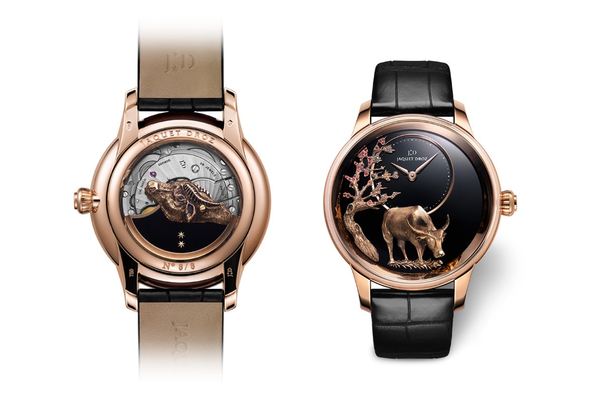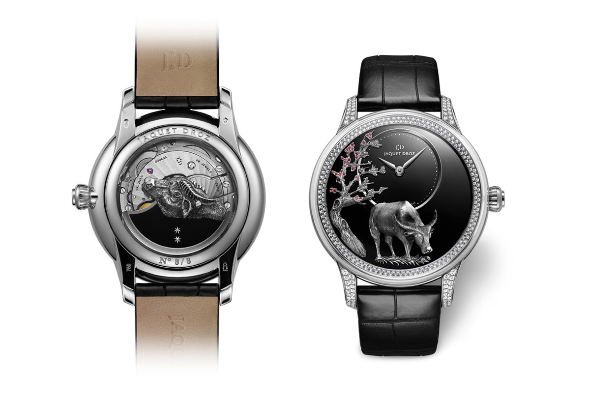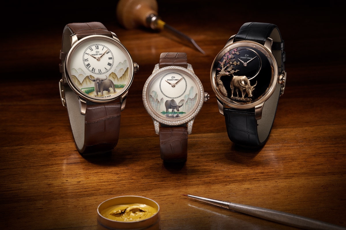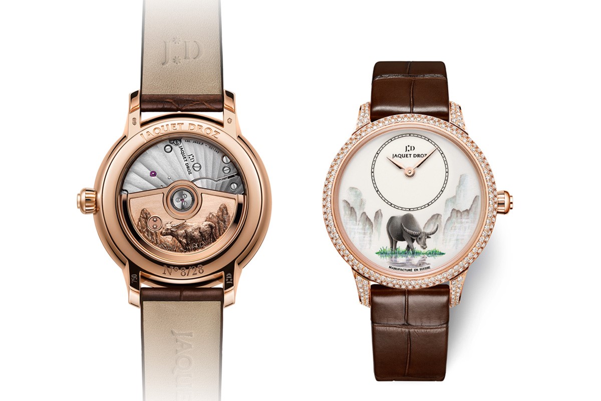 Non è d’altronde nuovo il rapporto delle case svizzere di orologeria con la Cina. Una relazione commerciale che affonda le radici nel tempo. Fino al 1774, quando Jaquet Droz varcò per primo i confini della Città Proibita, portando automi e orologi alla corte imperiale. In parte tuttora conservati a palazzo. Per l’anno del Bue la maison ha creato ben quattro modelli. Che utilizzano due Métier d’Art: la pittura in miniatura e l’incisione a rilievo.