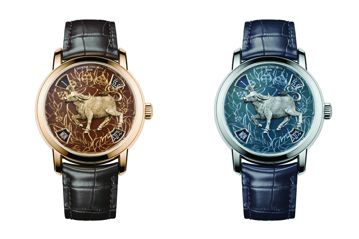 Il Capodanno cinese è insomma consacrato dalle maison svizzere come il momento per presentare le più estrose prove delle abilità dei loro maestri. Vacheron Constantin ha scelto l’arte dello Jianzhi, un’antica tecnica di découpage della carta. Con cui gli artisti/artigiani hanno realizzato due nuove creazioni che arricchiscono la collezione Métiers d’Art La légende du zodiaque chinois. Inciso a mano, in platino o in oro rosa, il bue è applicato sul quadrante decorato secondo l’iconografia cinese classica delle foglie.