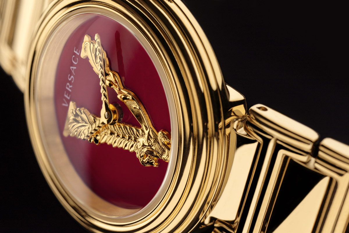 Se in passato il logo in evidenza è stato un modo per raccontare agli altri il proprio status sociale ed economico, nel 2021 è invece riservato all’ambito dell’appartenenza. Rimanda alla volontà di dichiarare, attraverso ciò che si indossa, l’adesione a una precisa estetica. Anche nel caso del Versace Mini Virtus Duo, la V dorata, impressa a rilievo e posta al centro del quadrante smaltato nei toni del rosso, del nero o del bianco, significa: «Io sto con Donatella. Amo il modo in cui Lady Versace tratteggia una moda lussuosa, sensuale, super-energetica; a tratti anche sfrontata, ma sempre carica di umanità». Un gesto di stile per ritrovare nel proprio look il guizzo d’audacia, dopo tanti mesi in leggings e maglioni.