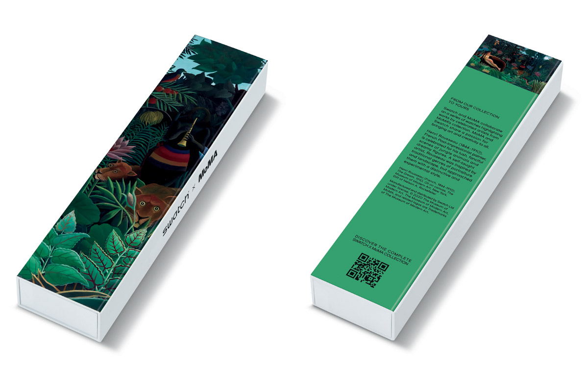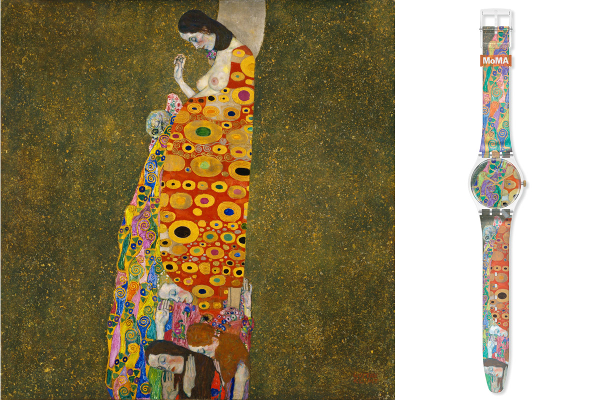 Sei modelli dedicati ad altrettante opere racchiuse nel tempio dell’arte newyorkese. Alcune celeberrime, altre meno note al grande pubblico, ma altrettanto rappresentative di un determinato artista o di una stagione artistica ben definita. Ecco quindi Starry Night di Vincent van Gogh, Hope II di Gustav Klimt, The Dream di Henri Rousseau, ma anche Composition in Oval with Color Planes 1 di Piet Mondrian, New York e The City and Design di Tadanori Yokoo. Non riportate però in modo didascalico, ma reinterpretate (come sempre) da Swatch con la propria sensibilità pop. Che fa dell’orologio da polso un mezzo immediato e potente per divulgare l’arte.