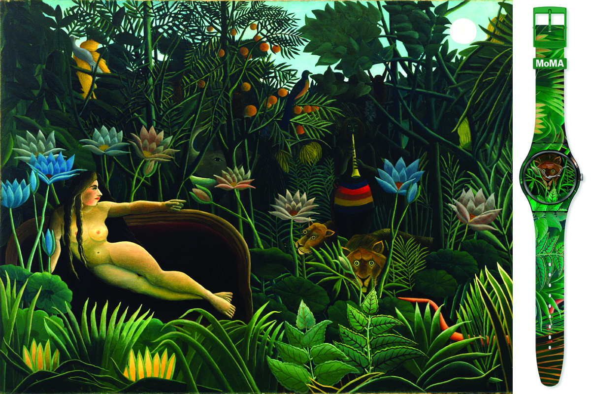 «La natura rigogliosa di Henri Rousseau in cui appaiono gli occhi magnetici della belva in agguato. Le pennellate quasi ipnotiche di Van Gogh che catturano una luce ideale. Le textures di Gustav Klimt, che ci raccontano di mosaici bizantini e colori sognanti. E ancora, un mondo di Mondrian forse meno riconoscibile di altri, ma che racchiude una tappa fondamentale del suo cammino artistico. La grafica graffiante e pulita di Tadanori Yokoo, così “naturalmente Swatch”…». Con queste appassionate parole Carlo Giordanetti, Direttore creativo di Swatch (nonché Ceo di Swatch Art Peace Hotel), ci racconta in sintesi – e in esclusiva – gli orologi della collezione Swatch X MoMA.