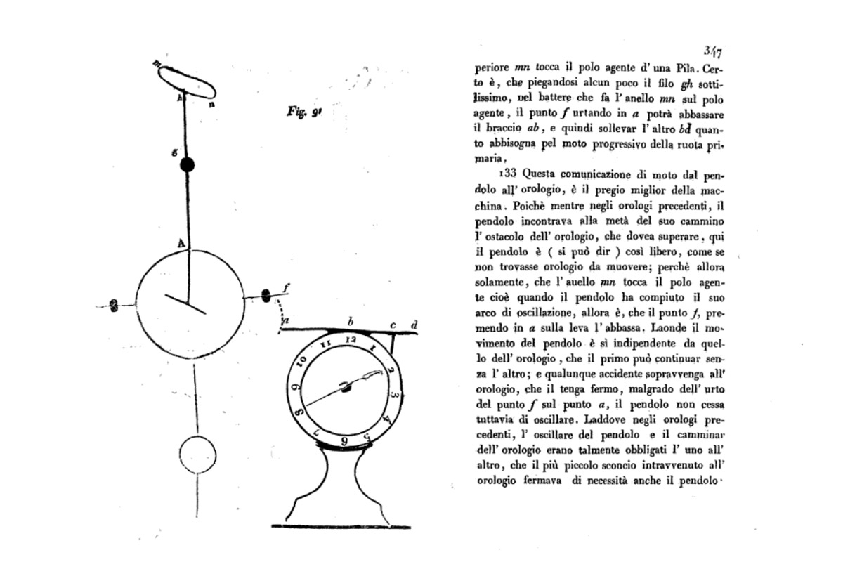 Inutile dire che le pile di quel genere non erano proprio come le intendiamo noi oggi. Erano una sovrapposizione di elementi metallici, avevano grandi dimensioni e potevano garantire una limitata durata ed energia. Le reminiscenze scolastiche ci riportano ad Alessandro Volta, ma se citassi Giuseppe Zamboni tutti strabuzzerebbero gli occhi. Ignoto ai più, per chi ama il mondo dell’orologeria l’abate Zamboni fu un piccolo-grande innovatore. Non che il suo interesse fosse effettivamente legato alla misurazione del tempo; ma il suo elettromotore perpetuo era di fatto un pendolo in oscillazione “perenne” fra due elettrodi collegati a pile di segno opposto. Ed ebbe come campo di applicazione proprio gli orologi.
