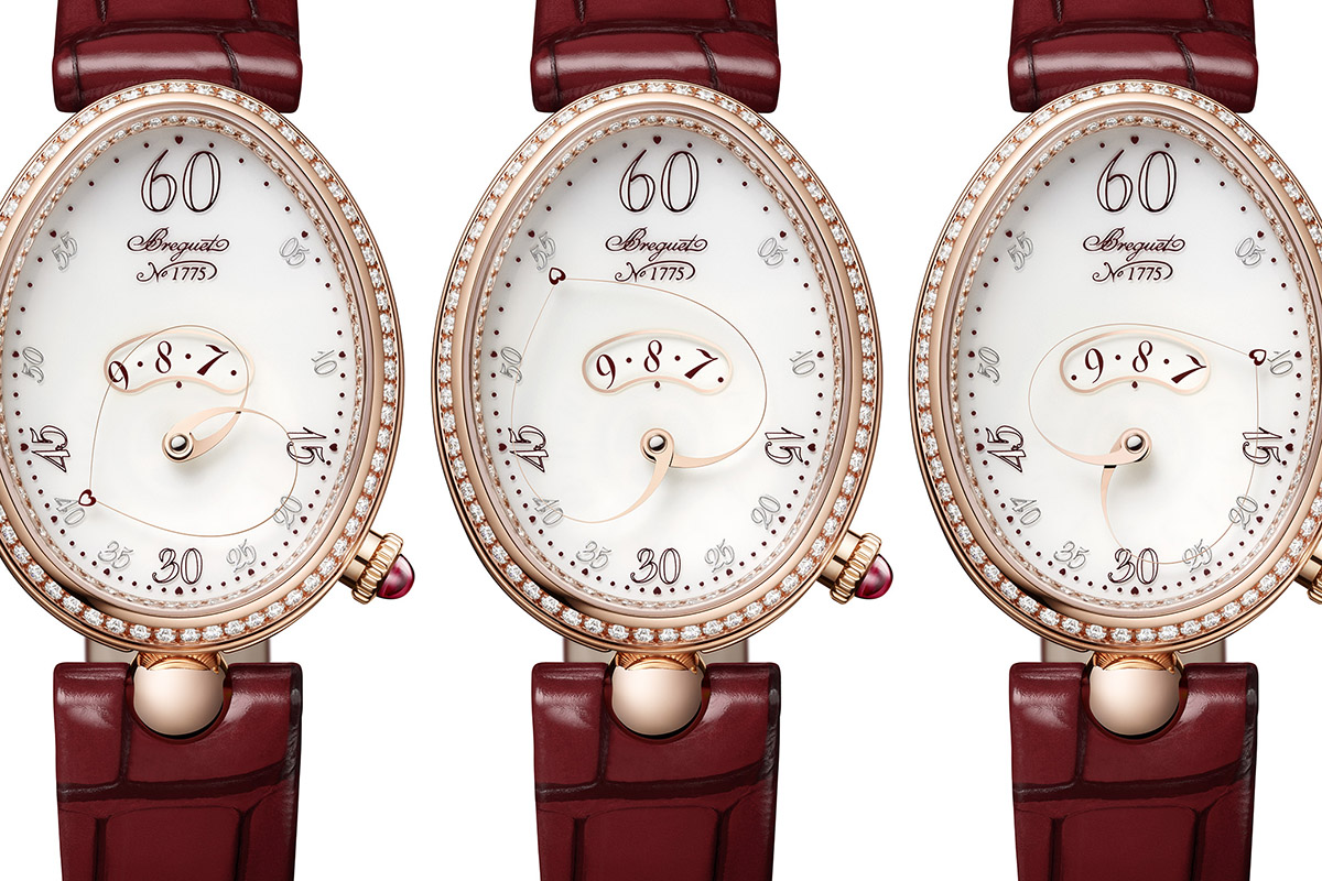 Da un punto di vista tecnico si tratta di un orologio per donna con indicazione digitale delle ore, in una finestrella sagomata. E fin qui siamo nell’eccellenza, certo, ma l’eccellenza di Breguet già la conosciamo bene. E da un pezzo. Quel che cambia totalmente le carte in tavola nel Reine de Naples Coeur è la lancetta dei minuti, a forma di cuore e con un altro cuore rosso a far da punta della lancetta. Un cuore al quadrato? Due cuori e una villa da favola? Scegliete voi.