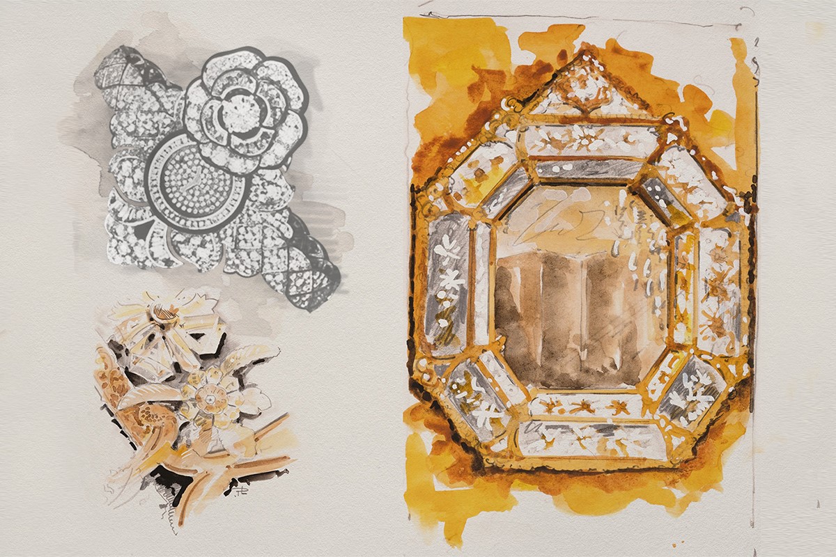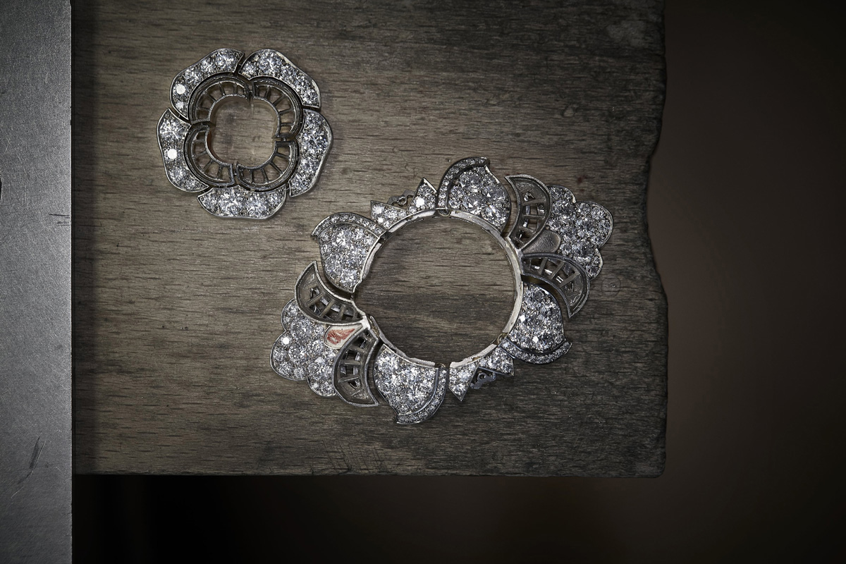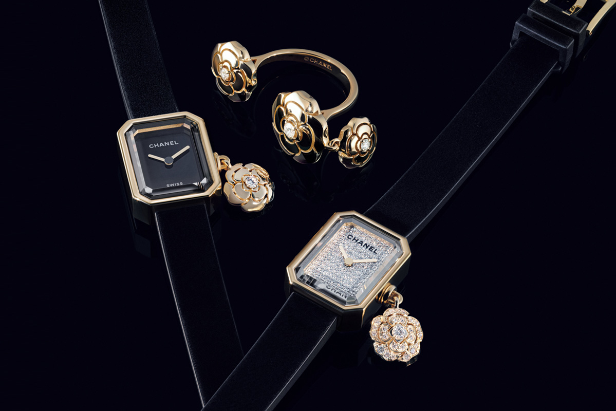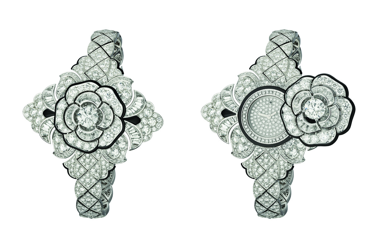 La gioielleria prima (era il 2001) e l’orologeria poi non hanno resistito a fregiarsi di questo fiore stondato nelle loro collezioni. Se il “debutto” fu nel 2005, da allora non si contano le versioni con variazioni fra le più diverse: con quadrante ricamato da Lesage (il Mademoiselle Privé brodé par Lesage), con tourbillon su cassa trasparente (Première Squelette Camélia) o a vista (il Première Tourbillon Volant). E ancora con i petali incastonati sulla cassa (montre Camélia), con madreperla sul quadrante (Mademoiselle Privé Marqueterie), e sulla manchette in tweed in cui la camelia nasconde minuti e ore (Mademoiselle Privé Bouton).