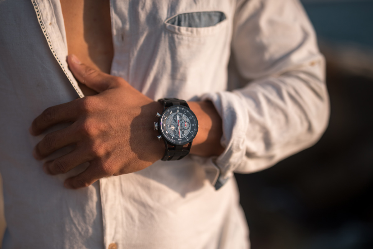 Arrivò il primo incontro decisivo. Con Gino Macaluso, all’epoca distributore di Breitling con la Tradema, la società da lui fondata. «Macaluso, uno dei grandi geni dell’orologeria, per me un grande maestro, intuì che Breitling poteva essere rilanciato puntando sul cronografo automatico. Valutò che il nostro cinturino fosse perfetto per il Chronomat. Fu un successo incredibile. E, sempre grazie a Macaluso, iniziammo a lavorare attivamente con Hamilton e Girard-Perregaux», ricorda il fondatore e Presidente di Locman. Per il quale è stato breve il passo dall’intuizione di cinturini innovativi all’innamoramento per l’orologeria.