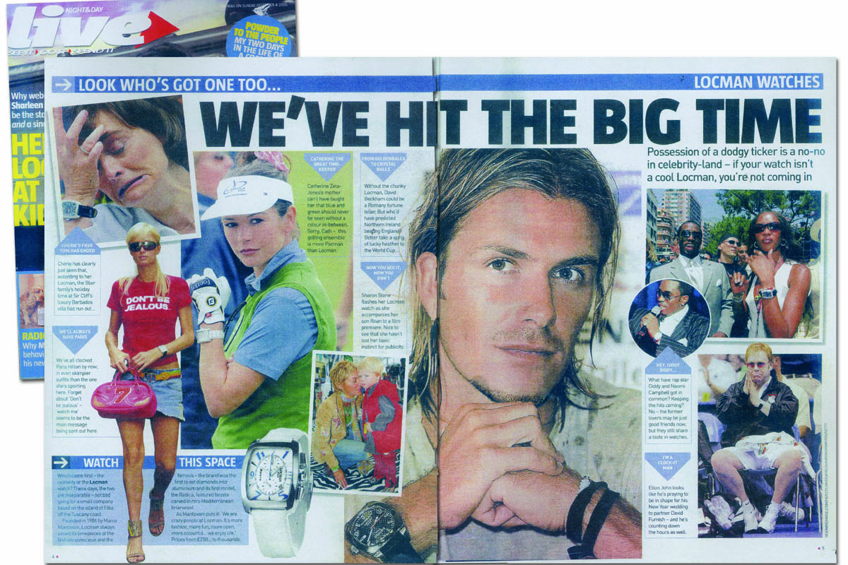 Sempre il destino mise sulla strada di Marco Mantovani un nuovo socio, l’americano Ben Feigenbaum. «Era il 2000. Avevamo cominciato a produrre la linea Sport in alluminio per conto terzi. Diventò il nuovo orologio a marchio Locman, che noi distribuimmo in Italia e Ben negli Usa. Lo star system», sottolinea Mantovani, «ci fece da cassa di risonanza». Anche grazie a un altro colpo di fortuna. «Ben Feigenbaum mise in vendita una collezione in alluminio e diamanti a New York da Bergdorf Goodman, la catena americana di negozi di lusso», ricorda Mantovani.