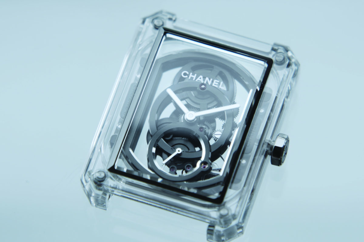 Una difficoltà che richiede una progettazione accurata, macchinari specializzati e massima competenza. E giustifica sia l’edizione limitata di 100 esemplari, sia il prezzo al pubblico: 80mila euro. Dalla sua, però, Chanel Horlogerie ha avuto l’esperienza del J12 X-Ray: un banco di prova che deve aver messo sul piatto tutte le problematiche da affrontare nella produzione degli esemplari in vetro zaffiro. Dalla purezza del materiale alle ridottissime tolleranze, dai rischi di rottura alla sensibilità necessaria all’assemblaggio, i tecnici della casa devono aver vissuto i tanti ostacoli in prima persona. E trovato, per ognuno, una soluzione, fino a ottenere quello che si definisce “savoir-faire”.