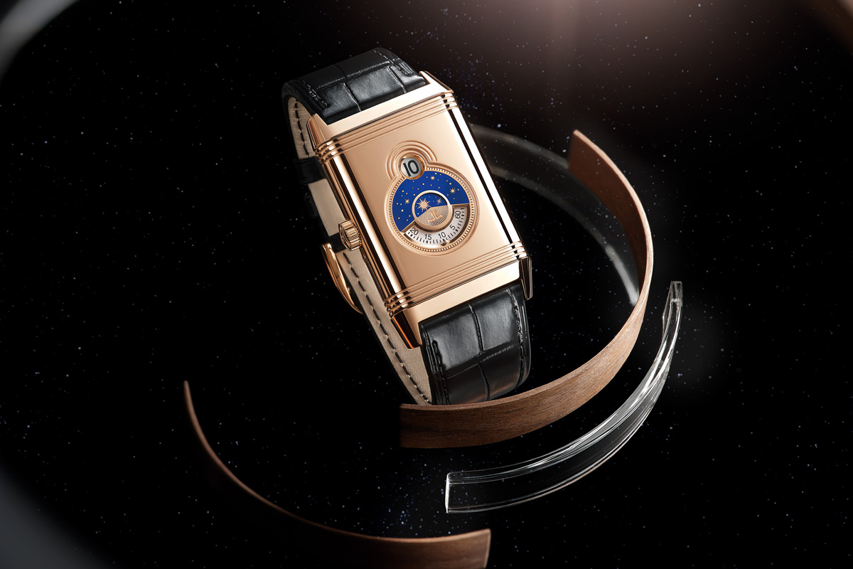 D’accordo, i display digitali fanno parte della storia del Reverso. Eppure sul retro il Reverso Tribute Nonantième presenta un aspetto del tutto inedito. “Un’espressione visiva completamente nuova, qualcosa che non si è mai visto prima”, conferma Lionel Favre. Sullo sfondo in oro rosa, una finestrella tonda racchiude le ore saltanti; al di sotto si trova il disco rotante dei minuti; e all’interno si staglia un altro disco rotante, più piccolo, con la funzione giorno/notte, a sua volta circondata da una decorazione dal tema celeste, realizzata nell’atelier Métiers Rares. Ovvero il dipartimento dedicato ai mestieri d’arte della Grande Maison.