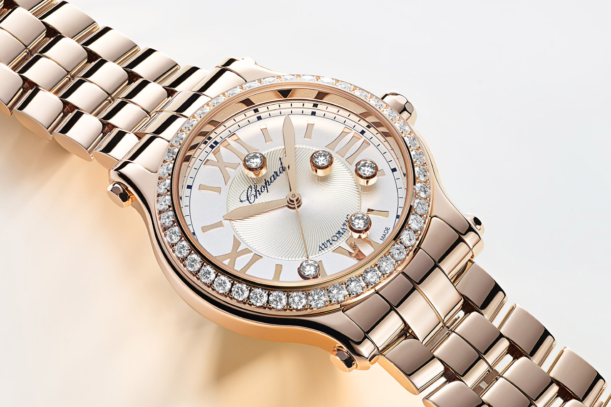 Sì, perché il video con Julia Roberts fa da supporto al lancio di due nuove linee dell’orologio inventato da Caroline Scheufele nel 1993. La prima appunto è l’Happy Sport 33 mm, la seconda è l’Happy Sport The First, fedele all’originale uscito quasi 30 anni fa. Sempre con la cassa da 33 mm di diametro e il movimento automatico di manifattura, ma con il tipico bracciale galet e 7 diamanti mobili sul quadrante, argenté o in madreperla. L’Happy Sport The First è infatti a sua volta declinato in due varianti: entrambe in Lucent Steel A233, ma una con la lunetta lucida e l’altra incastonata di diamanti. Due edizioni limitate, rispettivamente di 1993 e di 788 esemplari.