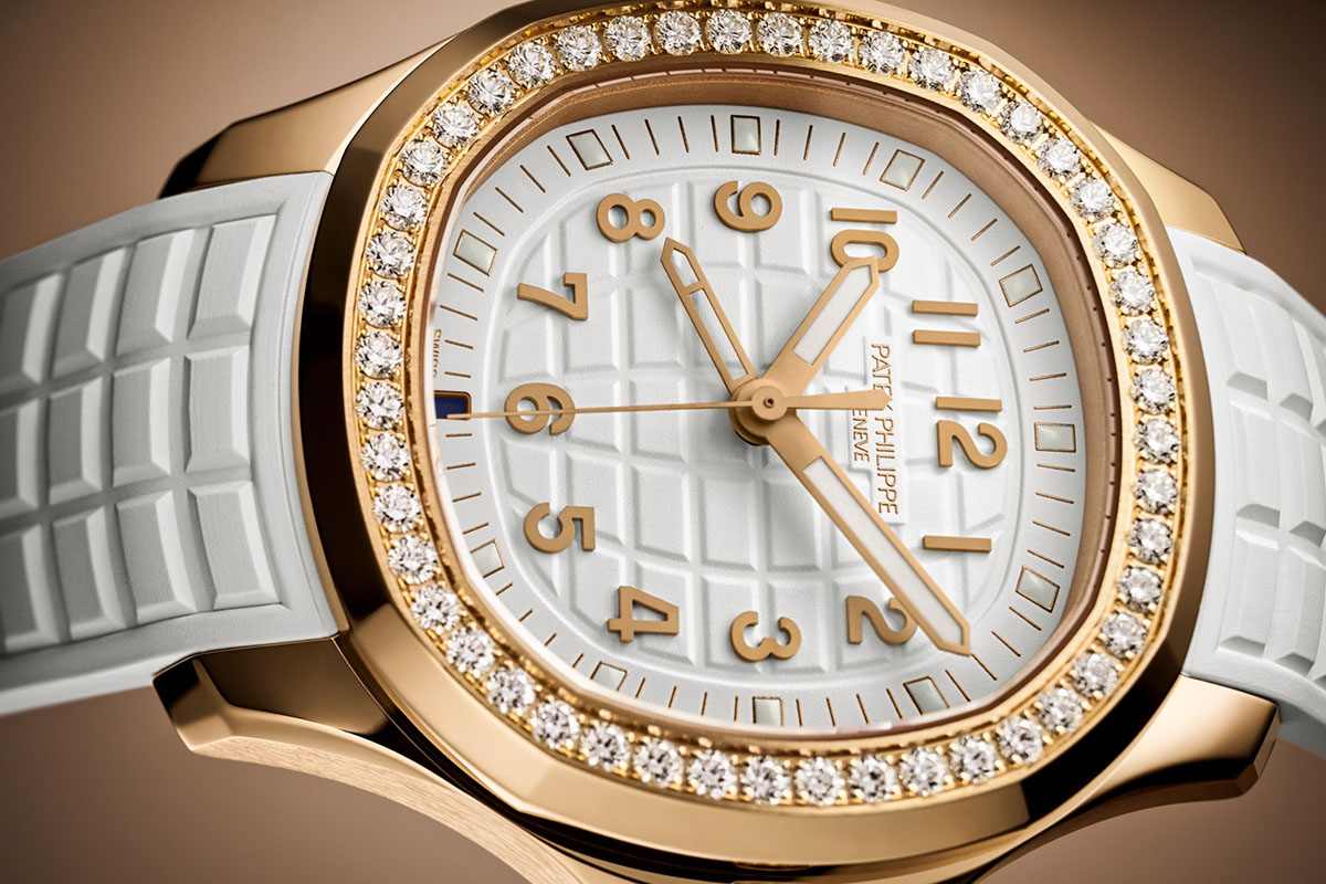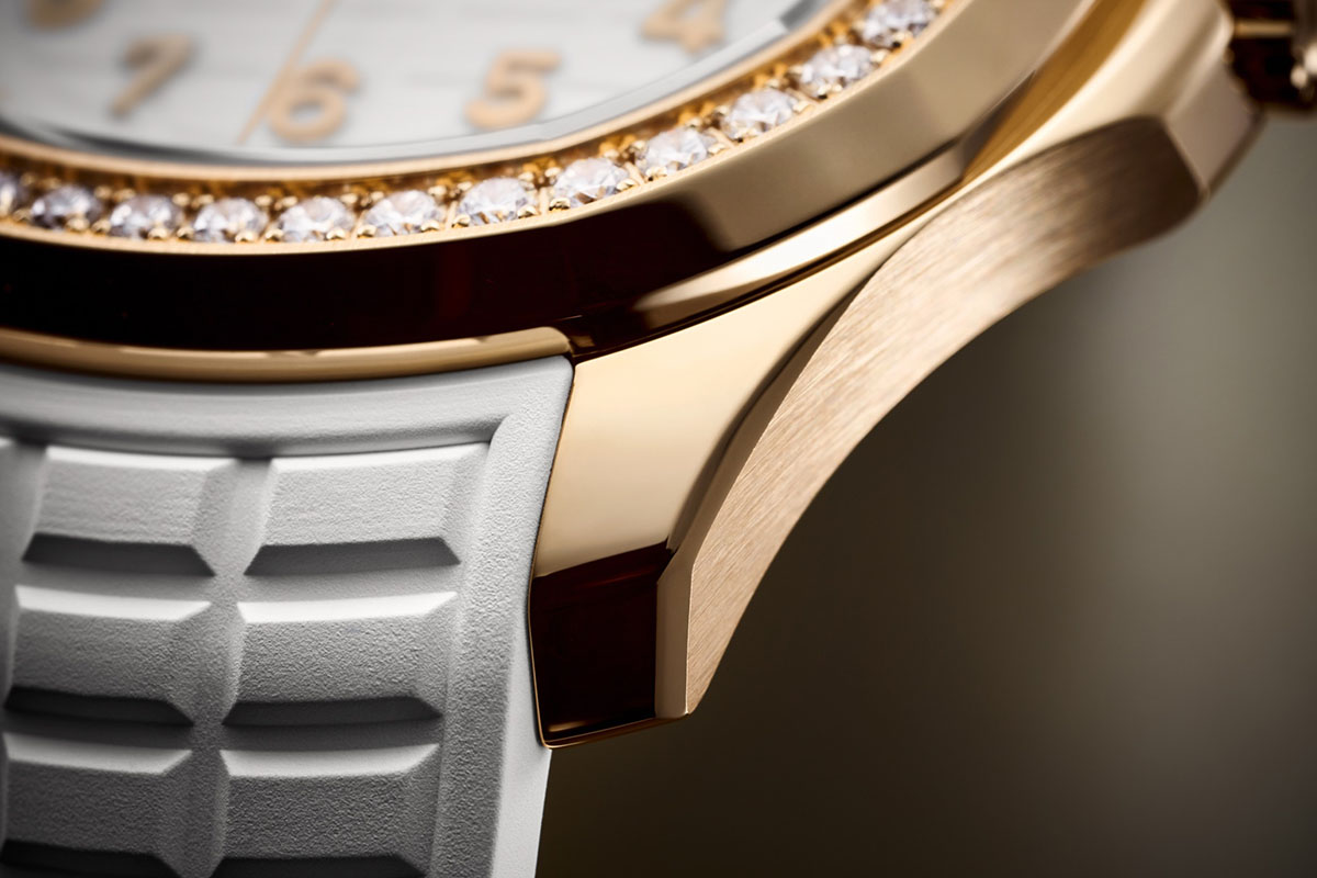L’Aquanaut Luce Automatic ha la cassa in oro rosa, ma per il resto è simile alla Ref. 5267/200A, nell’habillage come nelle caratteristiche tecniche: diametro di 38,8 mm; impermeabilità fino a 12 atm; lunetta incastonata di 1.11 carati di diamanti; quadrante con motivo Aquanaut, bianco opaco come il cinturino in materiale composito con fermaglio déployante. Cambia ovviamente il prezzo: 35.563 euro, invece dei 17.782 dell’equivalente in acciaio. Che però è al quarzo.
