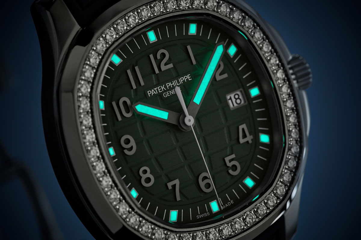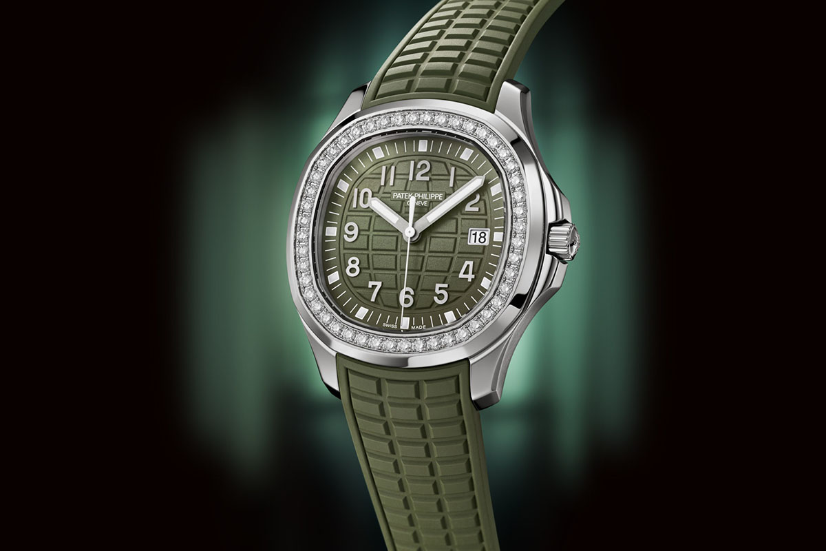 Lo stesso verde kaki si ritrova poi in una delle novità al femminile, la Ref. 5267/200A-011. Da notare che il primo esemplare della collezione (quello lanciato 17 anni fa) era proprio in questa cromia, anche se in una sfumatura diversa. Come quel pezzo storico il nuovo Aquanaut Luce è un “solo tempo”, con la cassa in acciaio che però ora raggiunge i 38,8 mm di diametro (contro i precedenti 35,6) e la lunetta impreziosita da 1,11 carati di diamanti. Per chi preferisce tonalità più “classiche”, comunque, esiste anche in versione nera, Ref. 5267/200A-001, o bianca mat, Ref. 5267/200A-010.