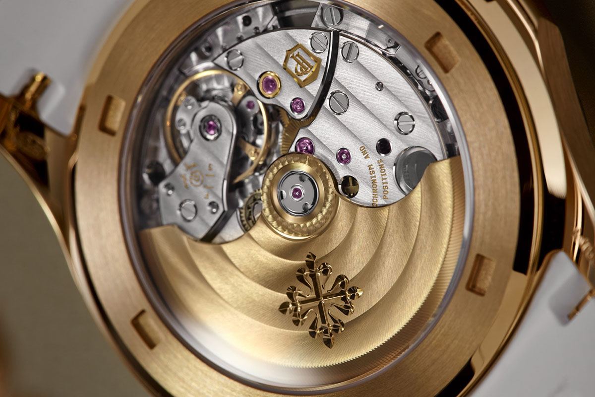 Per le signore che apprezzano la micro-meccanica, comunque, esiste anche l’Aquanaut Luce Automatic, fornito appunto di un movimento a carica automatica. Il calibro 26-330 S C, ovviamente realizzato in casa: di nuova concezione (Patek l’ha presentato nel 2019), è fornito di diverse innovazioni (due delle quali protette da brevetti), in particolare per quanto riguarda il sistema di carica. Ne abbiamo già parlato qui, anche se in un diverso allestimento.