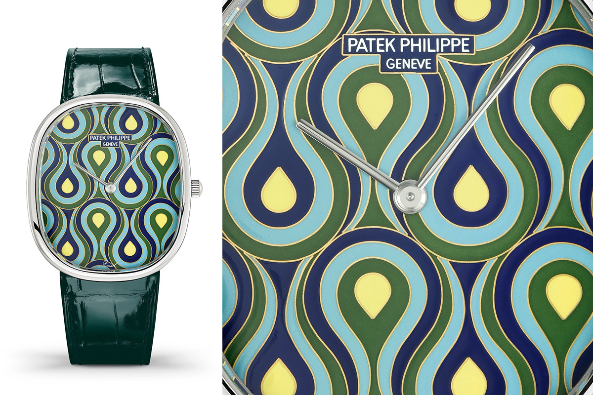 Quasi 20 metri di filo d’oro giallo, tagliato in minuscole sezioni sagomate a mano, per disegnare le figure stilizzate di una jazz band. Apoteosi dell’antica tecnica dello smalto cloisonné è la pendoletta Dôme Jazz di Patek Philippe. Che, per riprodurre l’energia e la potenza della musica, ha richiesto una gamma di 48 colori di smalti trasparenti, con nove passaggi al forno a una temperatura di 840°C. Il risultato è uno straordinario gioco di sovrapposizioni cromatiche, di sfumature vivide, in cui si staglia il giro delle ore simile ai tasti di un pianoforte. L’esemplare unico è uno dei pezzi esposti in questi giorni nella mostra Haut Artisanat 2020-2021, organizzata nei Salons Patek Philippe di Ginevra.