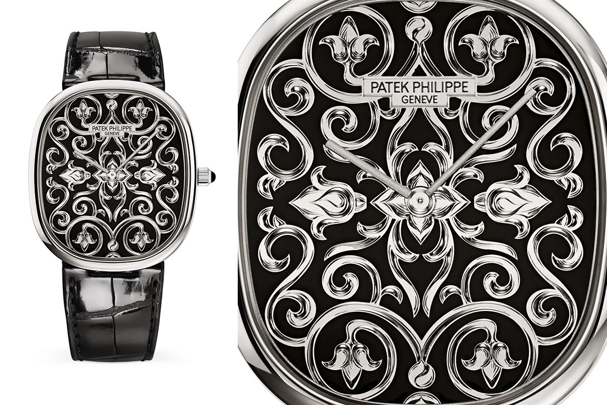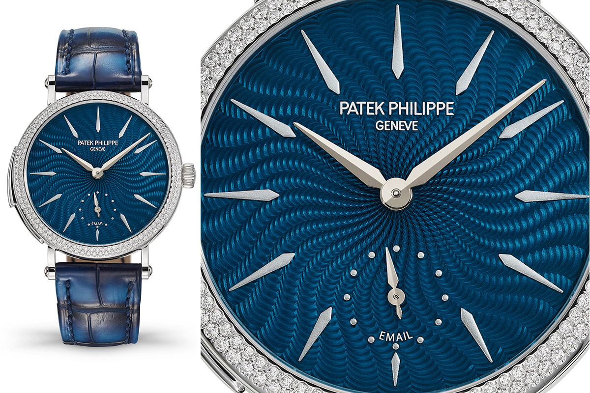 Ancora,tra gli highlights si trovano anche la nuova ripetizione minuti per signora Ref. 7040 con quadrante in smalto Grand Feu flinqué blu e lunetta con l’esclusiva incastonatura Flamme; e una mirabile reinterpretazione dell’Ellisse d’Oro in oro bianco Ref. 5738 che sul quadrante abbina allo smalto champlevé l’incisione a mano. La manifattura, infine, dà sfoggio di padroneggiare l’arte dell’incastonatura con la nuova versione del Nautilus Haute Joaillerie Ref. 7118, interamente in oro bianco con diamanti montati con la tecnica del “serti neige”, conosciuta anche come “incastonatura a neve o aleatoria”.