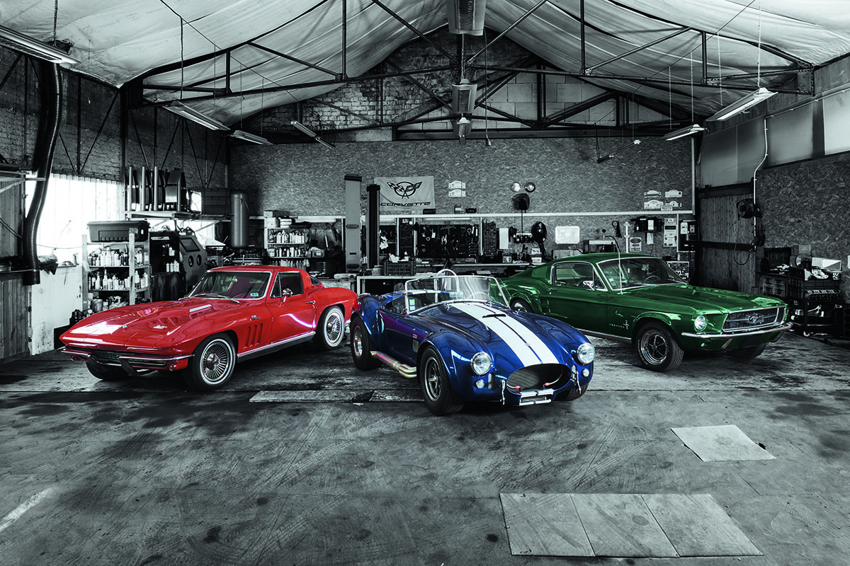 Ecco allora che Shelby Cobra entra nell’hangar seguendo una sorta di percorso stradale ben tracciato: curva e controcurva, un breve rettilineo quindi una repentina accelerazione, che scarica tutta la straordinaria potenza del motore. È poi stata la volta di Chevrolet Corvette: la sua è un’andatura da parata, guidatore con bella accompagnatrice a fianco, macchina da Febbre del sabato sera e da grandi “vasche”, avanti e indietro per pavoneggiarsi e divertirsi lungo i boulevard delle metropoli a stelle e strisce. Infine Ford Mustang, agile e quasi furtiva, complice anche il colore scuro; basta guardarla perché venga in mente la musica ipnotica e martellante del più famoso inseguimento tra auto della storia del cinema. Quello del tenente Bullitt (alias Steve McQueen, che si dice abbia pilotato di persona) nell’omonimo film, su e giù a per i celebri dossi di San Francisco