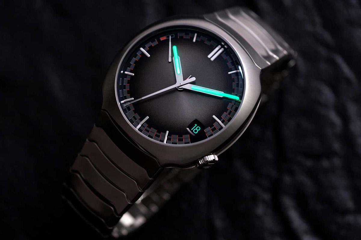 Siamo ormai tutti abituati a parlare di streaming, ma la verità è che la parola streamliner è tanto intraducibile in italiano quanto quasi onomatopeica, perché rivela molte delle impressioni che si hanno guardando per la prima volta l’orologio. Il termine si riferisce ad un modo di progettare nato con le prime gallerie del vento, ai primi concetti di aerodinamica applicati alle forme dei treni anni Venti/Trenta, denominati per l’appunto Streamliner.