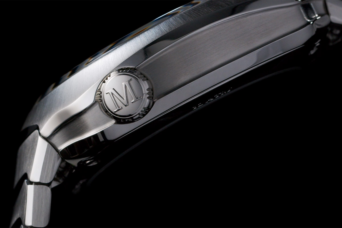Qui si traduce in un insieme sinuoso di linee, senza spigoli vivi. Una cassa (in acciaio) che può essere definita a cuscino ma ha in realtà una forma peculiare (vero e proprio tratto distintivo della collezione); e un bracciale integrato, anch’esso in acciaio, che senza soluzione di continuità avvolge il polso con le onde riproposte dalle maglie. Il quadrante, protetto da un vetro zaffiro bombato tipo glassbox, è di un’elegante tinta fumé con lavorazione soleil e ospita tutte (o quasi) le informazioni del calendario perpetuo.