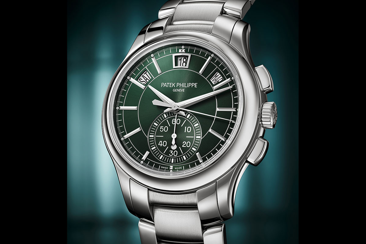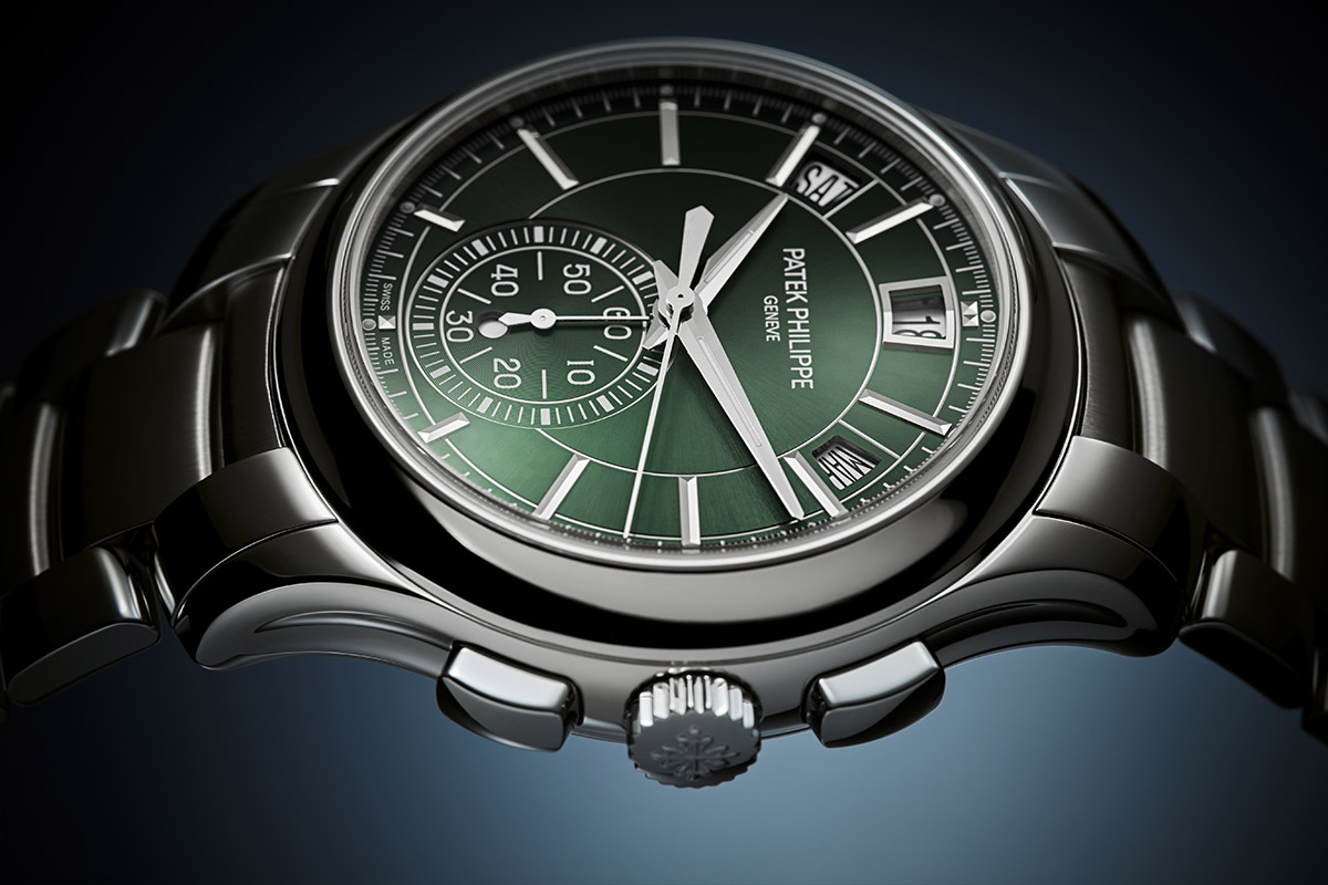 Perché ho scomodato il concetto di “variazioni sul tema” per tre cronografi con complicazioni recentemente emessi da Patek Philippe? Perché la prima cosa che verrebbe alla mente è limitarsi a dire che in Patek hanno deciso di darsi al colore per vendere qualcosa in più. Ma non è vero. Non è vero perché i tre orologi di cui parliamo si vendono senza problemi, visto che sono comunque prodotti in serie necessariamente limitata. Mi riferisco, in ordine crescente di prezzo, al cronografo automatico flyback con Calendario Annuale Ref. 5905/1A-001 – 52.298 euro; al cronografo automatico flyback e Ora Universale Ref. 5930P-001 – 88.907 euro; e al cronografo sdoppiante e calendario perpetuo Ref. 5204R-011 – 274.040 euro.