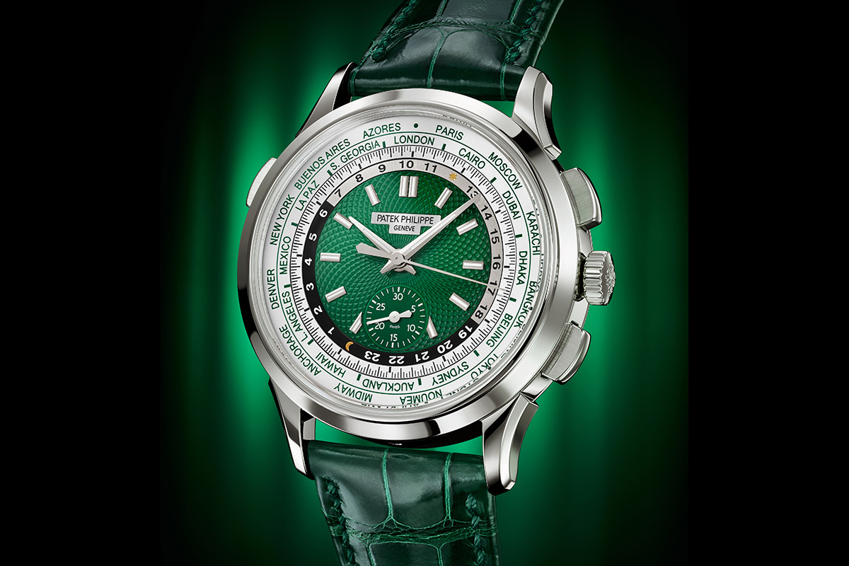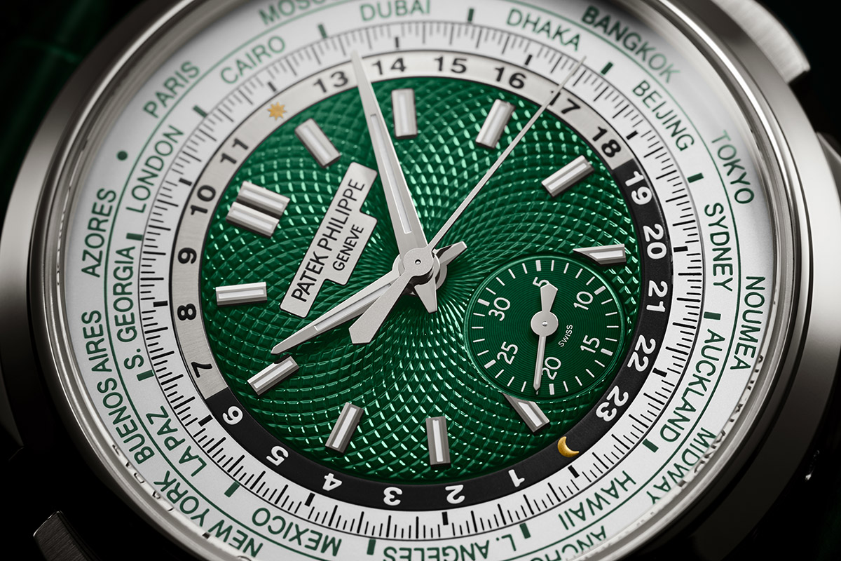 Come potrebbero reagire i collezionisti a questo innesto di novità? Dalle prime reazioni che ho sentito, l’accoglienza è stata favorevole – com’era logico aspettarsi – soprattutto per il Crono Ore del Mondo. Con cassa da 39,5 mm abbiamo la precedente versione in oro bianco e adesso questa in platino. Sorprendente perché di solito Patek non dimentica l’oro rosa. Sia singolo che in coppia quest’orologio potrebbe salire di valore in un lasso di tempo non lunghissimo, pandemie e crisi economiche permettendo. E comunque il verde vivace del quadrante piace molto.