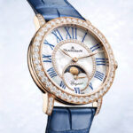 Tecnica a parte, il Ladybird Colors offre alle donne un’estetica del tutto nuova. La cassa in oro bianco o rosa misura 35 mm di diametro: una taglia né troppo grande né troppo piccola, ma di certo pensata espressamente per le donne. E coerente con il gusto di una femminilità contemporanea. In più è impreziosita dai diamanti – altra caratteristica imprescindibile dell’orologeria al femminile di questo Millennio -, incastonati sulla lunetta, sulle anse e sul quadrante, per un totale di oltre due carati. Il colore e la lucentezza delle pietre, così come i riflessi e l’iridescenza della madreperla, rivelano la scelta di materiali di prima qualità. Da notare anche la numerazione delle ore, scandita da cifre di grandi dimensioni, in carattere corsivo, aggraziate ma non leziose.