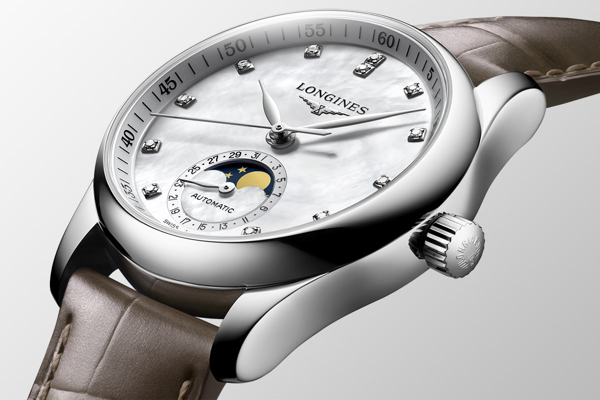 Se si aggiungono gli esemplari da 40 mm di diametro – anch’essi adatti ai polsi femminili e con lo stesso ventaglio di spesa – la collezione è in grado di dare alle signore una scelta estremamente vasta, proprio in risposta a tutte quelle richieste elencate prima. Che poi, diamine, non è che le donne vogliano la luna… E se anche fosse, nella Longines Master Collection Moonphase c’è pure quella.