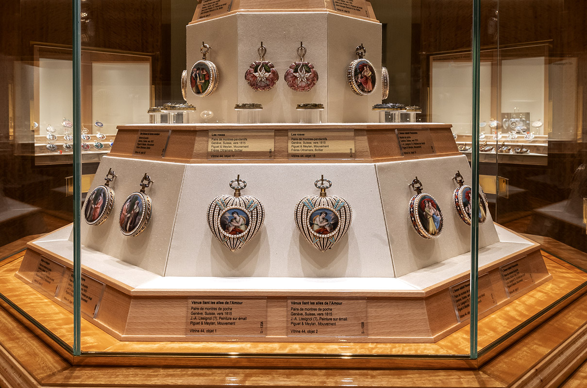Al secondo piano dell’edificio si trova invece la collezione antica: 1.200 esemplari costruiti tra il XVI secolo e la prima metà del ‘900. Anche qui l’esposizione è suddivisa in venti aree tematiche, ognuna dedicata a un aspetto dell’evoluzione tecnica e/o estetica dell’orologeria. A partire dai primissimi orologi “da persona”, come quello tedesco a tamburo del 1530 circa, che veniva “mostrato” (in francese “montré”) indossandolo a mo’ di pendente. Per passare alle curiosità, come gli orologi a forma di teschio (“memento mori”), di croce o di delfino. E ancora una serie di capolavori del XVII secolo con soggetti mitologici o religiosi, spesso ispirati ai grandi pittori, che testimonia lo sviluppo dell’arte dello smalto – in particolare con le tecniche del cloisonné e dello champlevé – e di quella dell’incisione.