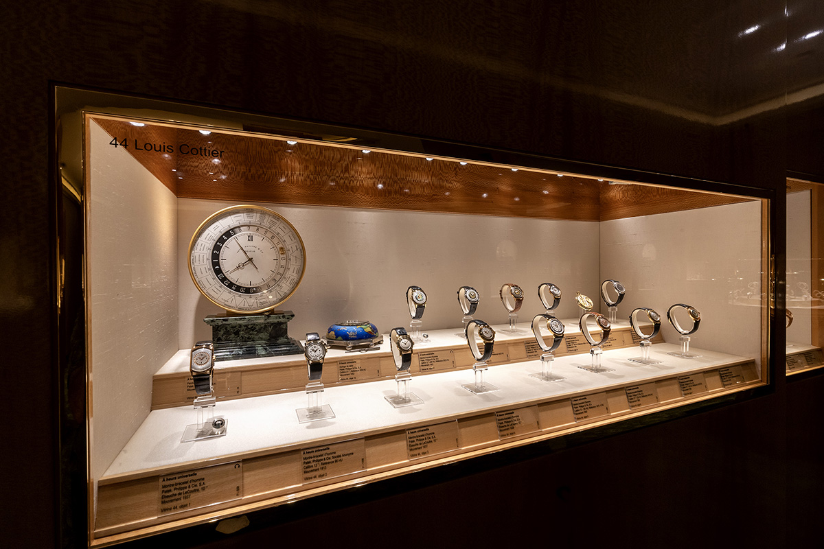 Non possono dunque mancare esemplari emblematici per ciascuna complicazione: il primo orologio da polso con calendario perpetuo, realizzato da Patek Philippe nel 1925; gli orologi da viaggio con doppio fuso orario e quelli con l’Ora Universale, messi a punto con Louis Cottier. E il primissimo orologio da polso con suoneria Patek Philippe: una “ripetizione dei cinque minuti” da donna datato 1916. Ampio spazio del resto è dedicato agli orologi femminili. Ma si possono ammirare anche il primo orologio da polso con cronografo à rattrappante (1923); gli orologi con tourbillon, quelli astronomici, le equazioni del tempo e tutte le Grandi Complicazioni in senso lato.
