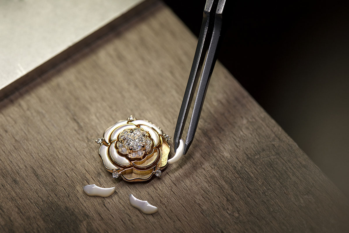 Anche ogni orologio a segreto dei Mademoiselle Privé Bouton manchette in effetti meriterebbe un ulteriore approfondimento per conoscere i tempi di sviluppo del progetto, le tecniche di costruzione, i metodi di incastonatura, il ricorso ai mestieri d’arte, le ore di lavoro degli artigiani che hanno permesso di realizzarli. Potete comunque trovare qualche spiegazione e curiosità nelle didascalie delle foto. Qui mi limito a sottolineare che la loro esclusività deriva proprio dalla fabbricazione complessa. I Mademoiselle Privé Bouton sono infatti prodotti in tiratura limitata: gli anelli-orologio in 5 esemplari ciascuno, i polsini in 55 esemplari. Per avere ulteriori suggestioni vi rimando ai tanti video sul sito ufficiale.