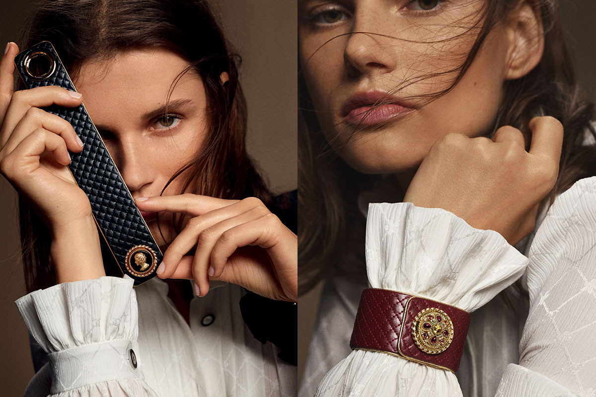 Si differenziano l’un l’altro per il “coperchio” che nasconde l’orario (ricordo che sono sempre “orologi a segreto”, come gli altri esemplari della collezione). E che li fa apparire a tutti gli effetti come vistosi pezzi di gioielleria, dalla funzione insospettabile. Un esemplare quindi ha la cover decorata con un motivo in 3D a camelia: posto su una base laccata, il fiore prediletto da Gabrielle Chanel è composto da petali incastonati di diamanti. Un altro invece è ornato da un cammeo che riproduce il profilo di Mademoiselle Coco scolpito nell’agata niccolo. Il terzo infine ha un decoro bizantino – rimando alla passione della grande couturière per i mosaici veneziani – formato con diamanti di vario taglio, ad alta caratura.