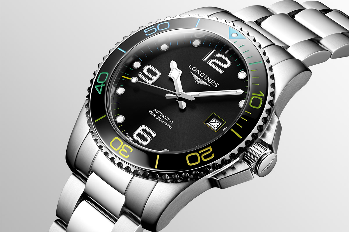 Fino al 2013 l’HydroConquest rimase quasi uguale a se stesso. In quell’anno Longines introdusse i dodici i numeri arabi sul quadrante al posto dei 6, 9 e 12, ripristinati poi nel 2015. Nel 2018 arrivò la ghiera in ceramica e gli indici a bastone furono soppiantati dai “pallettoni”. Negli anni anche le dimensioni della cassa mutarono, passando da 44 mm a 43, 41, 39, così come all’acciaio si affiancò la ceramica.