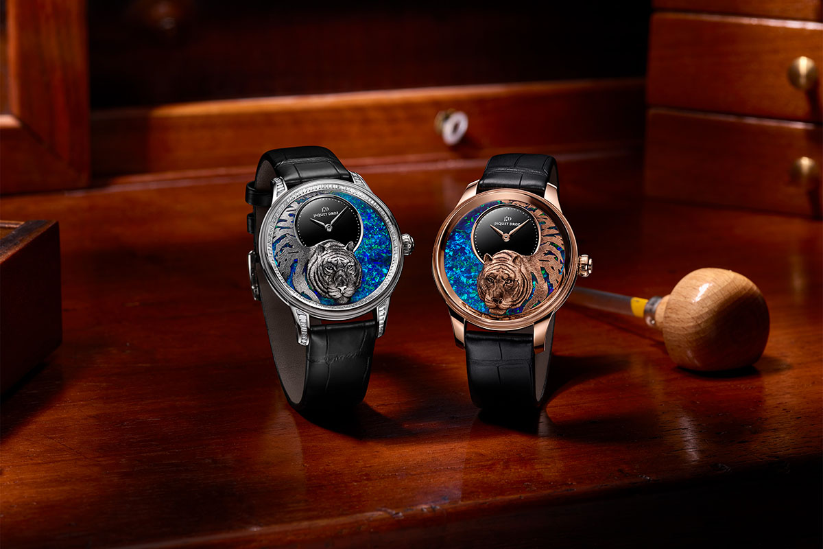 Sì, perché – ormai è una tradizione – gli orologi dell’anno della Tigre sono perlopiù pezzi di alto artigianato. Con il quadrante “illustrato” da bassorilievi e micro-sculture in 3D, pitture in miniatura e smalti policromi…. rigorosamente realizzati a mano, con il ricorso ai più svariati métiers d’art. Chopard, per esempio, si serve dell’antica tecnica giapponese della lacca Urushi e del Maki-e; Piaget dello smalto cloisonné, Ulysse Nardin dello champlevé… Per tanti il Grand Feu è quasi un obbligo. C’è perfino chi, come Jaquet Droz, mixa l’arte del cesello con quella della lavorazione delle pietre dure. Roba da perderci la testa e lasciarci il cuore (oltre che il portafoglio). Ma c’è dell’altro.