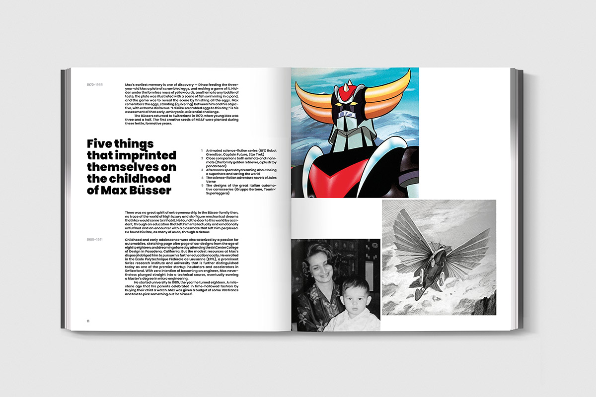 Fondato nel 2005, MB&F (l’acronimo sta per Maximilian Büsser & Friends) è un laboratorio concettuale d’arte e microingegneria, dedicato alla progettazione e realizzazione di esemplari scaturiti da speciali collaborazioni con maestri orologiai, designer visionari, esperti di micromeccanica, e il contributo di aziende e artigiani specializzati. Da sempre improntato alla massima trasparenza nel mettere in rilievo le persone (quasi un collettivo di amici) che stanno dietro la produzione delle diverse collezioni, il brand con questo libro svela anche le informazioni relative a ciascuno dei 3000 orologi realizzati nei primi 15 anni di vita.