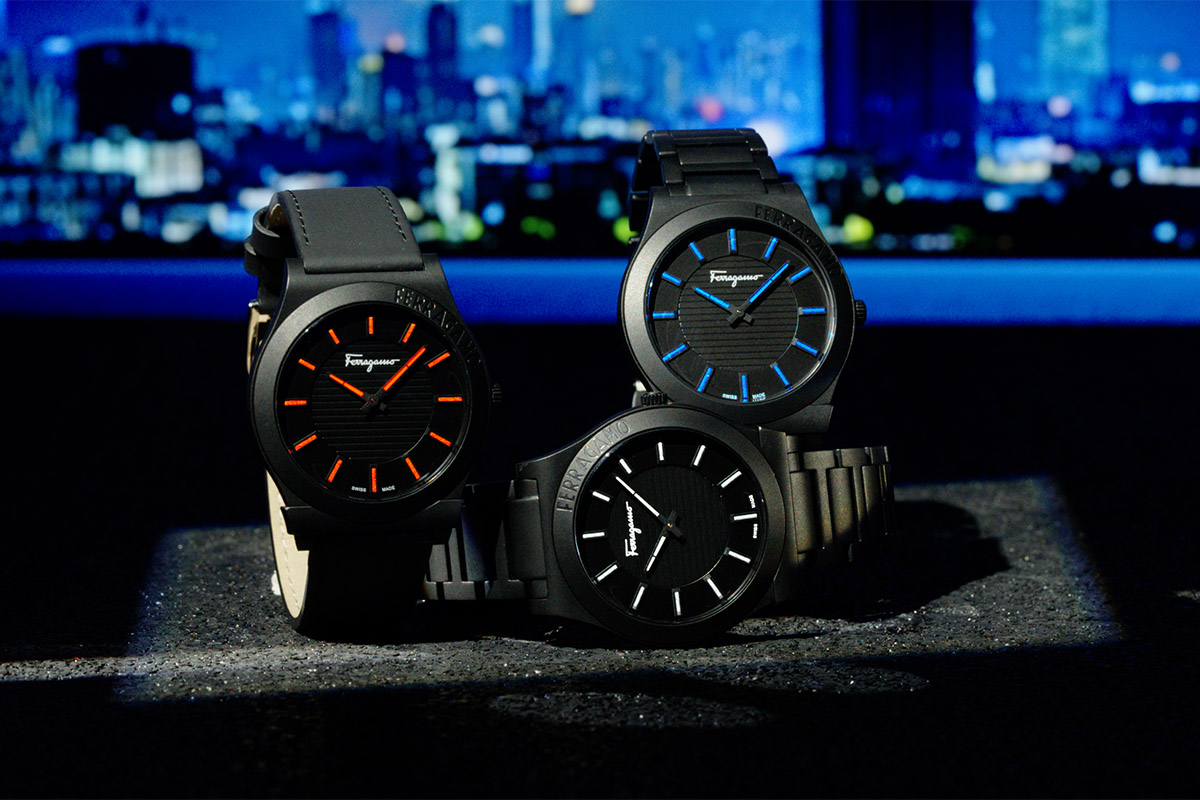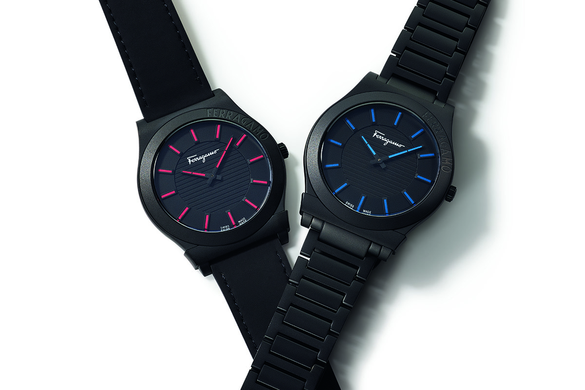 Ancora, il lettering Ferragamo, a rilievo sulla lunetta, esprime la passione giovanile per il logo e per la griffe. Così come l’aspetto total black interpreta al meglio il mood metropolitano e cosmopolita dei giovanissimi. A renderlo unico, però, ci sono i flash di colore sul quadrante: gli indici e le lancette in Super-LumiNova, quasi ludici alla luce e funzionali nell’oscurità. Non resta che l’imbarazzo della scelta tra il cinturino in pelle di vitello gommato e il bracciale in acciaio, entrambi neri e con il doppio logo sulla fibbia.