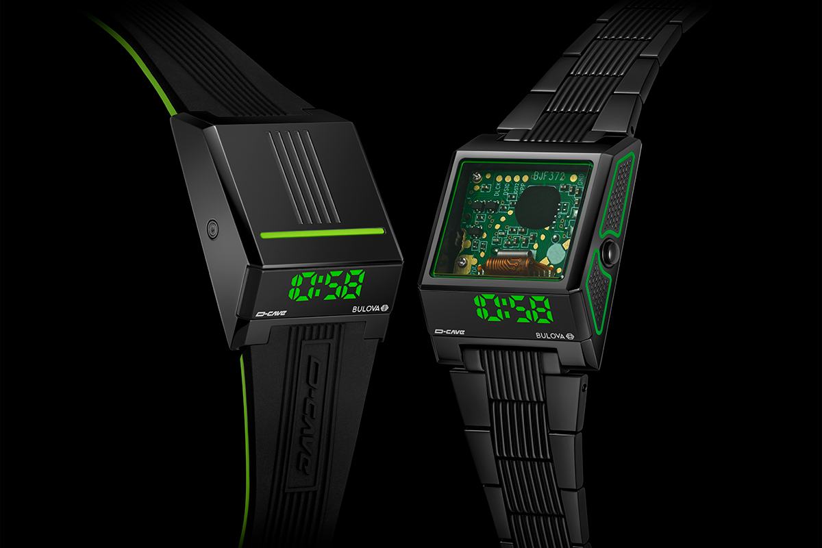 È anche per questa ragione che, a partire dallo scorso 24 marzo, l’unico modo di acquistare il Bulova Computron D-Cave Special Edition, è per mezzo di uno dei 1.000 NFT D-Cave. Gli acquirenti hanno così ottenuto l’accesso sia a una versione virtuale che a una versione fisica dell’orologio. Il Computron D-Cave Special Edition esibisce una cassa “da esposizione” in vetro minerale, attraverso la quale è possibile vedere i circuiti elettronici. È decorato da un dettaglio laterale inciso con acido di colore verde, ispirato alle torri dei computer; e si allaccia la polso con un bracciale in acciaio Ip abbinato.
