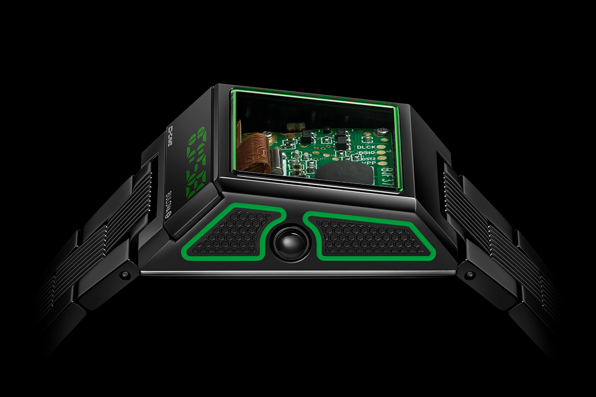 Con la stessa linea trapezoidale e i medesimi elementi di design del modello originale del 1976, ecco quindi i nuovi Bulova Computron D-Cave Standard e Special Edition. Che sfoggiano una cassa in acciaio inossidabile nero Ip (placcato agli ioni), accenti verdi luminosi e Led verdi nel display a doppio fuso orario ispirato al mondo del gaming online. È passato mezzo secolo, dicevo, ma il look è ancora futuristico.
