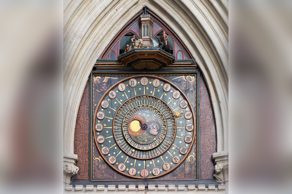 E proprio a Wells erano presenti i resti di un altro orologio, molto molto antico, addirittura dotato di un quadrante astronomico. L’analisi comparata dei due movimenti mostrava inequivocabili e fortissime somiglianze, per cui fin da subito gli studiosi ipotizzarono che entrambi provenissero dalla stessa bottega. Per l’orologio di Wells pensarono a una data di poco posteriore, considerando la sua installazione derivante da un’azione specifica del Vescovo Erghum.