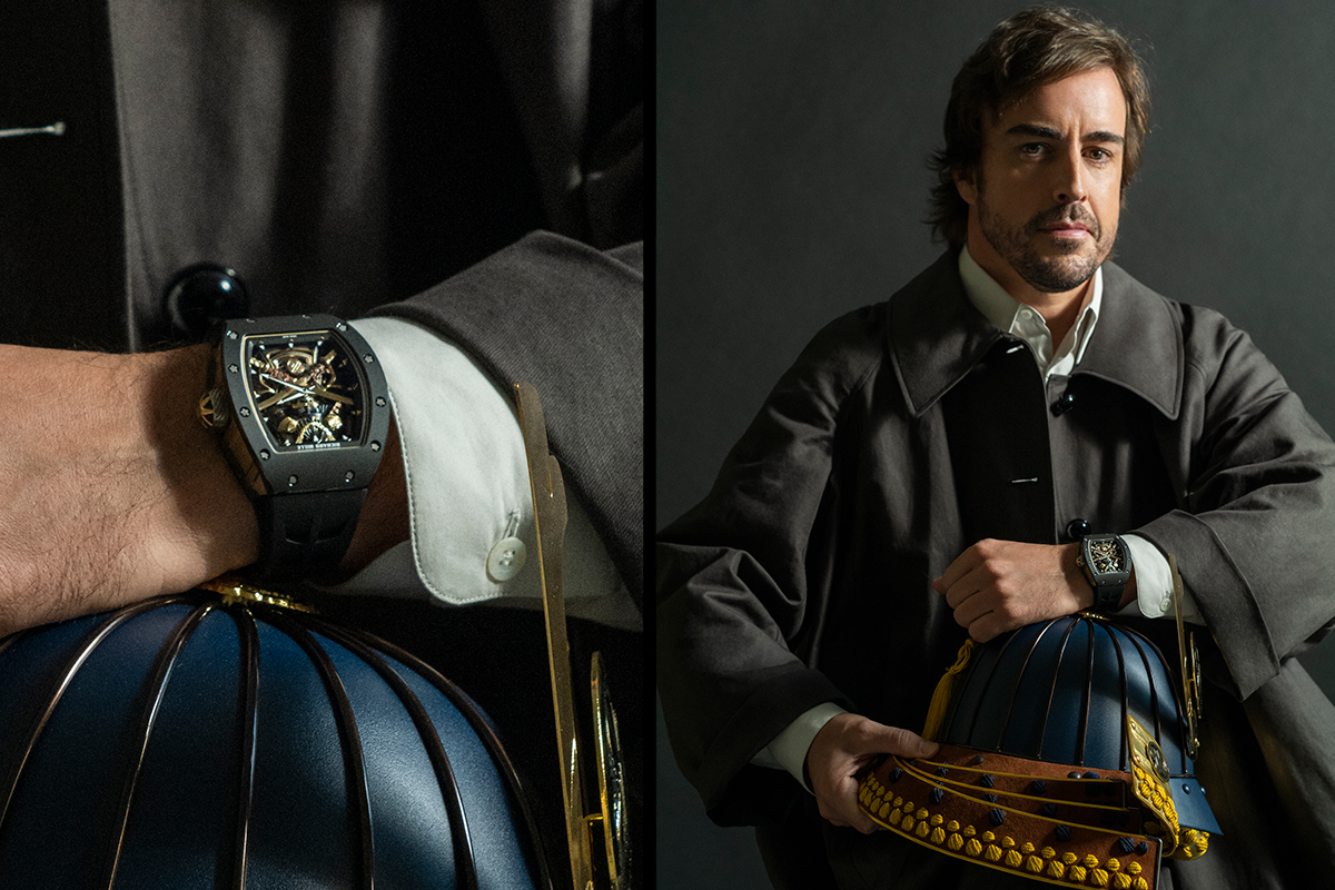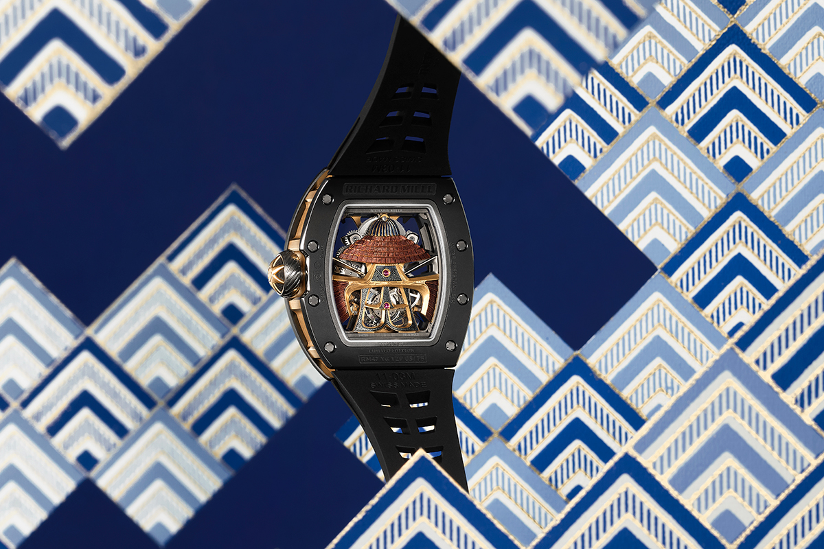 L’RM 47 Tourbillon, del resto, si distingue proprio per la silhouette del samurai, ritratto nella propria armatura sul lato quadrante e sul lato fondello, al cui interno è ospitato il movimento. Si dice che questo modello sia nato da una conversazione fra Richard Mille e Fernando Alonso, storico ambasciatore del marchio, appassionato di arte, storia e filosofia giapponesi, tanto complesse quanto antiche. È certo invece che la scultura a bassorilievo del samurai è stata realizzata interamente a mano dal maestro incisore Pierre-Alain Lozeron, e poi dipinta dalla moglie Valérie.