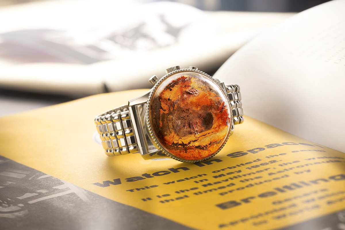 Quanto all’esemplare di proprietà di Carpenter, invece, subì danni rovinosi al rientro sulla Terra, per la prolungata esposizione all’acqua di mare in attesa delle operazioni di recupero che si protrassero per ore. Willy Breitling quindi ordinò che all’astronauta fosse inviato un nuovo modello, ritirò quel pezzo non più funzionante e lo ripose all’interno della propria raccolta privata senza alcun clamore. Almeno finora. L’orologio utilizzato da Carpenter nello spazio è stato infatti tirato fuori dagli archivi così com’era rimasto, senza alcun restauro, ed esposto in occasione dell’evento organizzato a Zurigo. E ritorna anche nel servizio fotografico realizzato per il lancio del nuovo Navitimer Cosmonaute.